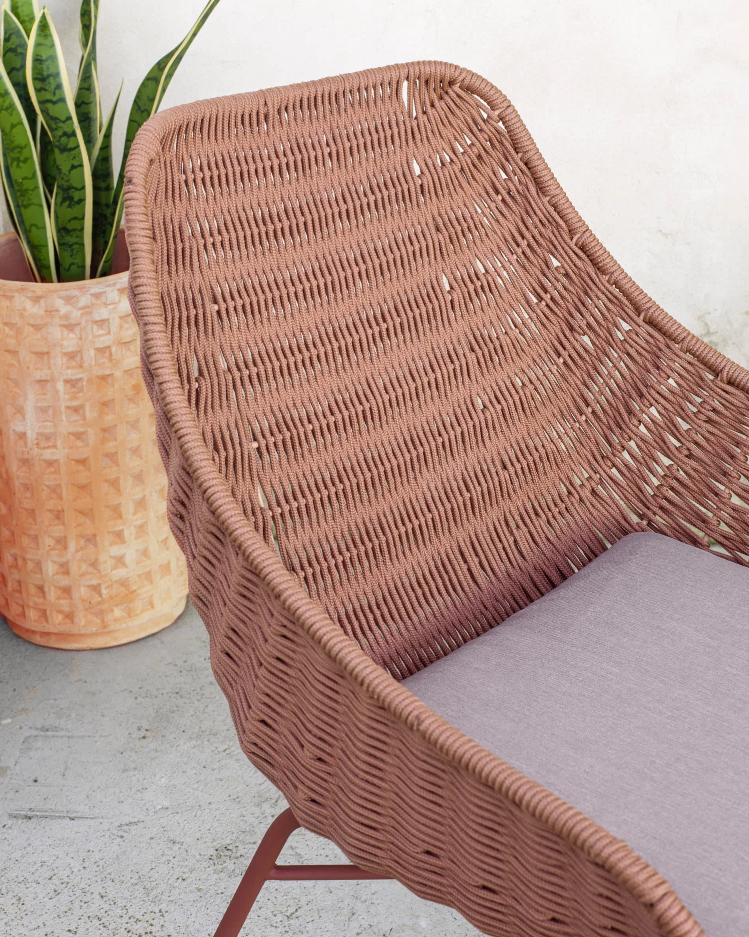 For that spritzer in the sunshine or hot chocolate in the living room, the Abeli armchair is ready for you to relax, either indoors or outdoors under cover. Add style to your spaces with materials like this hot, current terracotta cord.