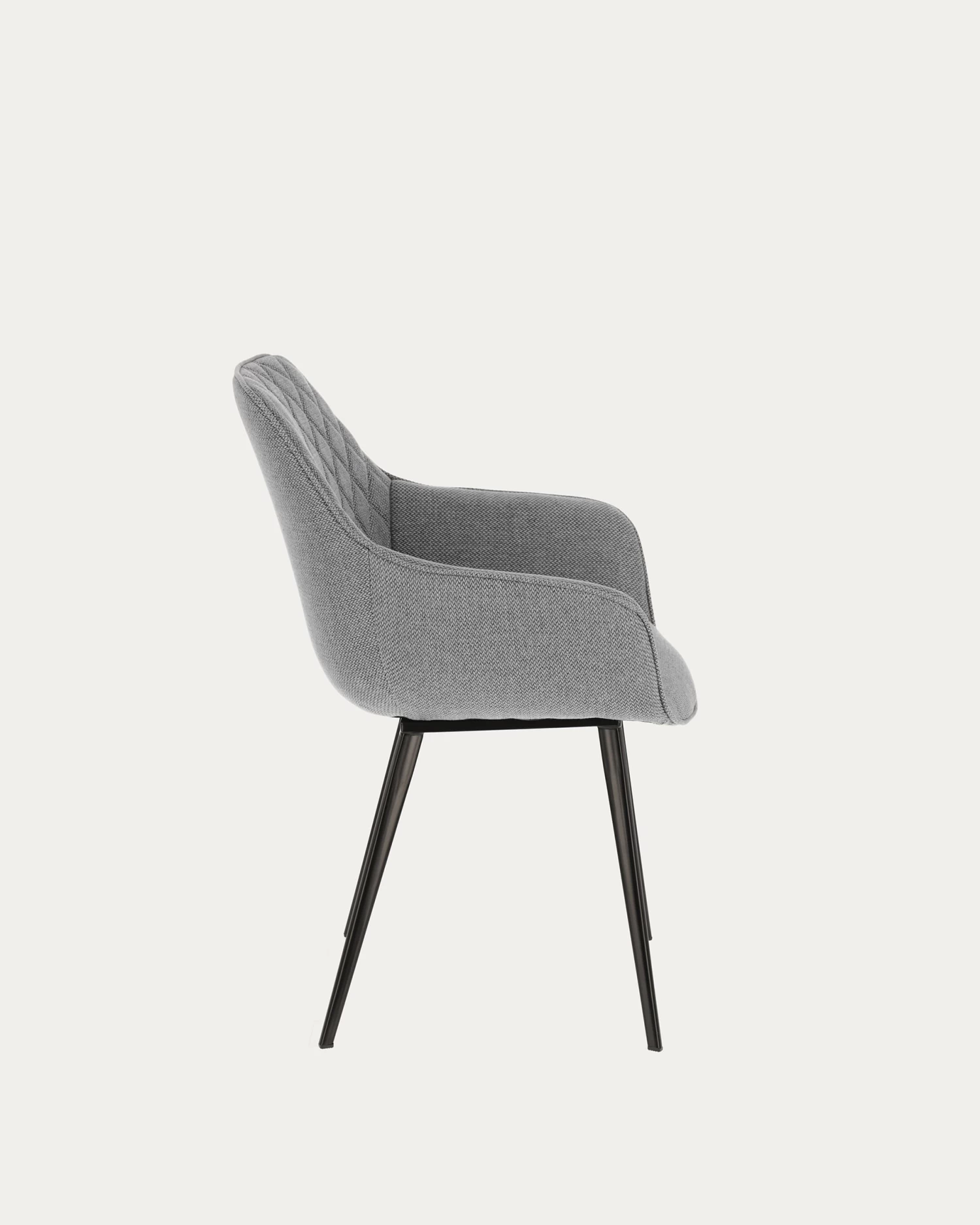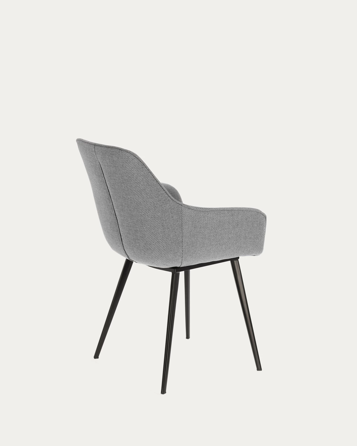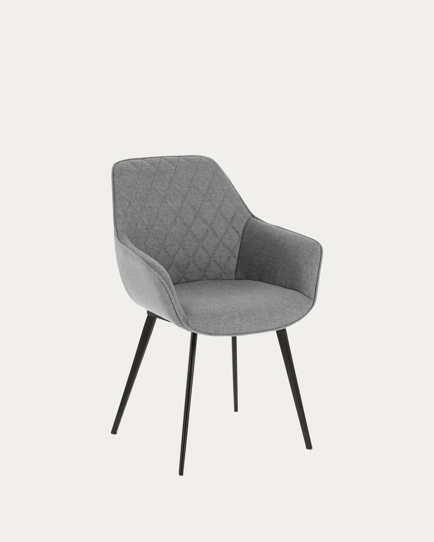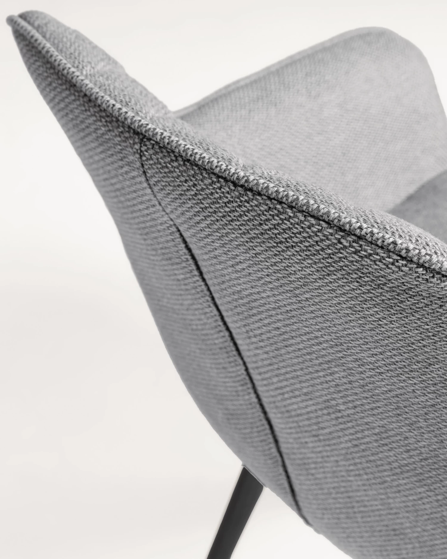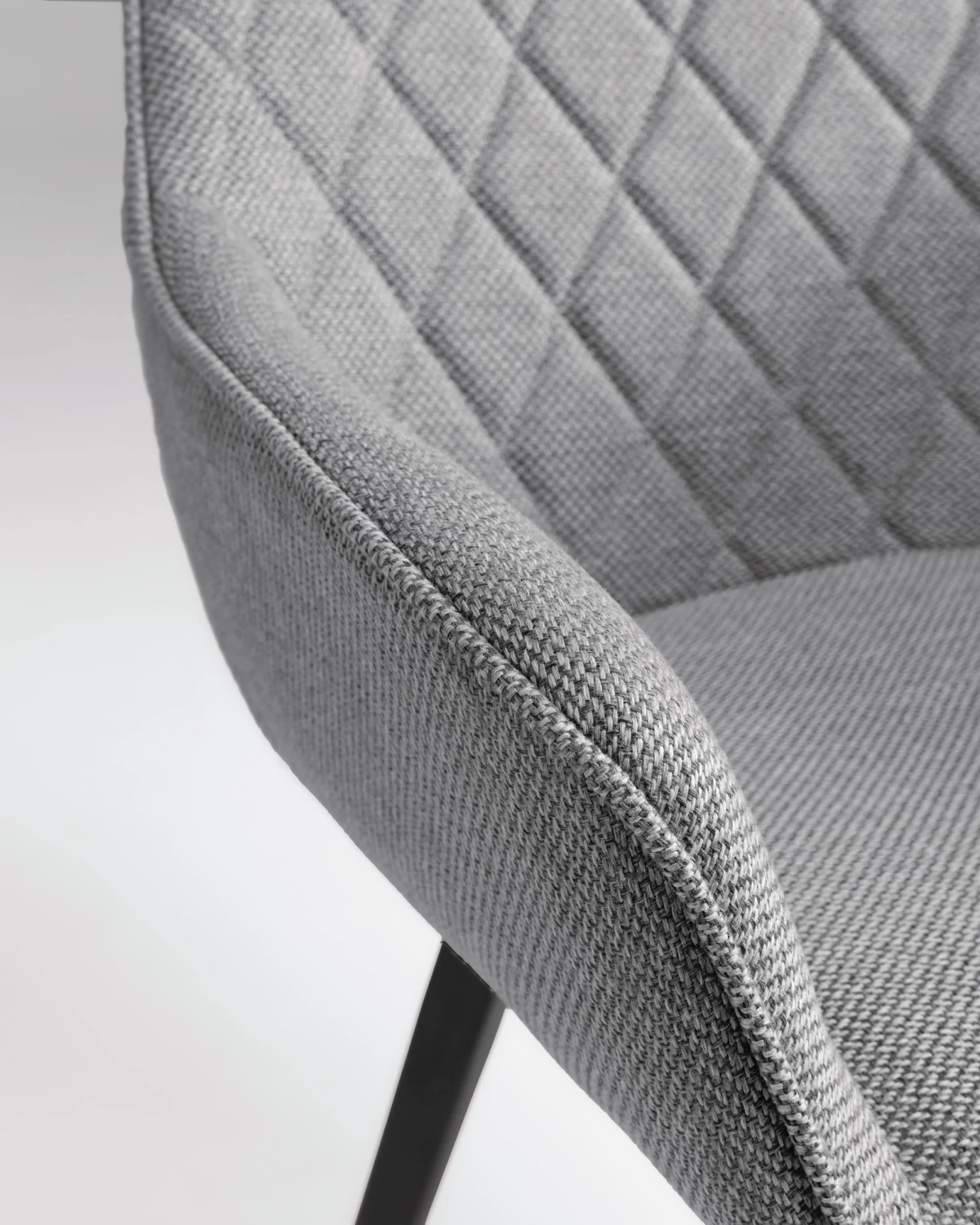 The Amira chair keeps you seated with armrests and diamond padding, but now it is also upholstered with this light grey anti-stain fabric, which repels any liquids that may fall on it and is very easy to clean. It is also supported by a resistant structure, with steel legs and a perfect matte black finish. If you have style for everything else, have it when you’re sitting.