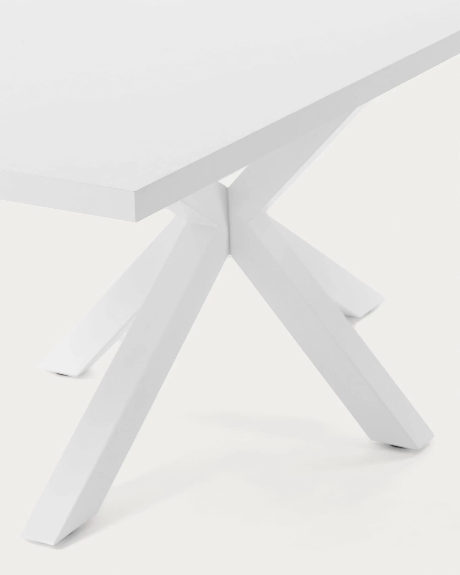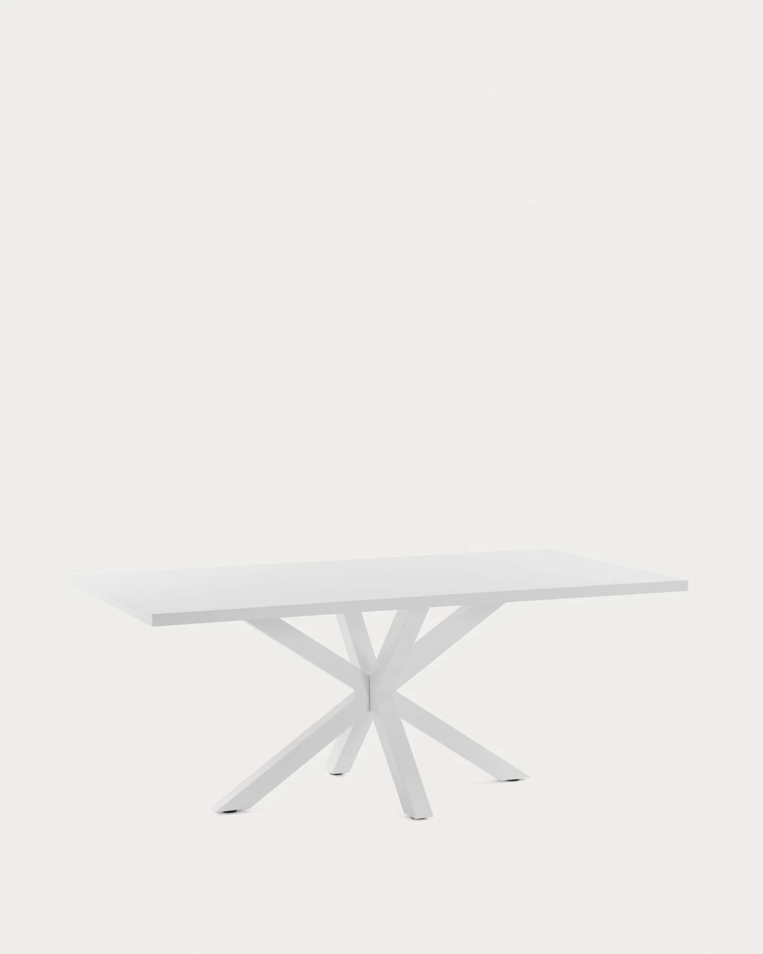 This table, designed by our team, has a melamine treated top measuring 200 cm long with a white finish. This top is supported on a steel base painted with a white finish. The table is available in many other models. What’s yours?