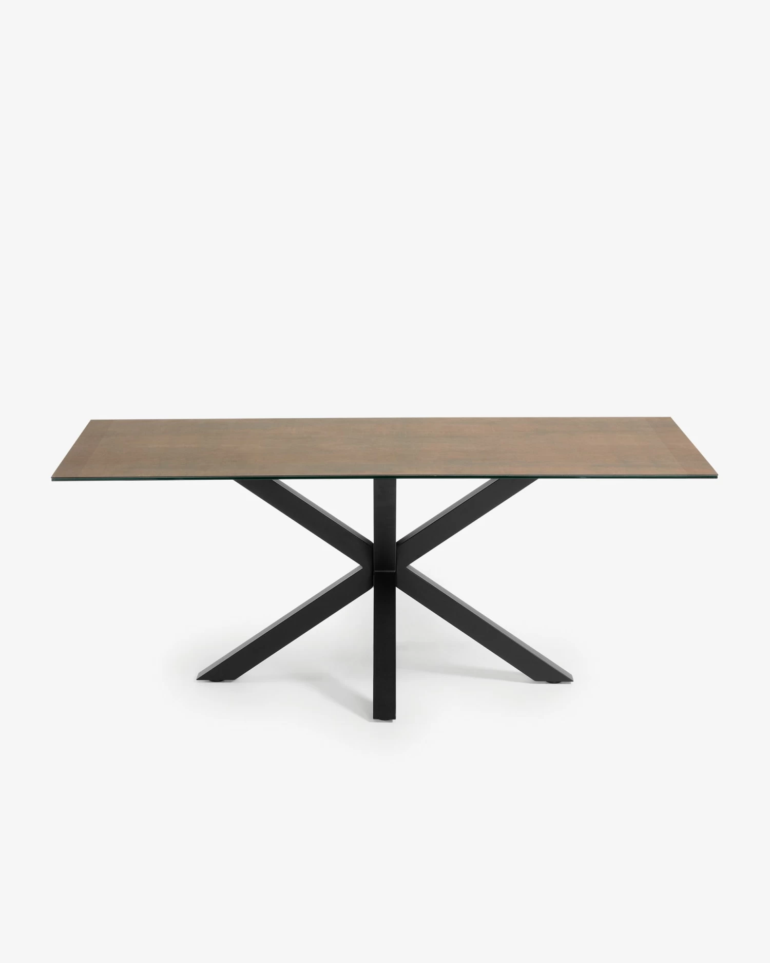 This Argo 200 cm table consists of a porcelain top reinforced with glass at the bottom and steel legs with a white finish. The top, with a Iron Corten, goes with everything. Thanks to the properties of the material, the colour of the top is maintained and resistant to wear and extreme temperatures, and it is also waterproof. It is supported by a structure where the legs seem to intertwine, resulting in a very top design that provides stability. Enjoy Argo design.