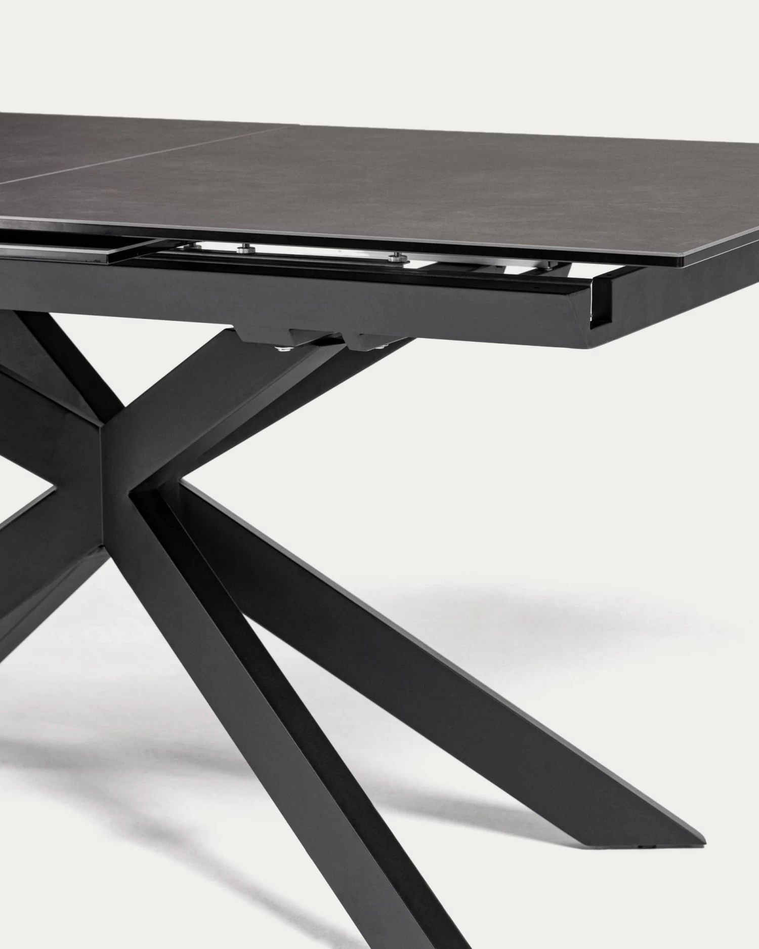 Thanks to this extendable table, made with a porcelain top, there will always be room for your guests. The structure with crossed legs will give you more leg space and adds extra comfort.