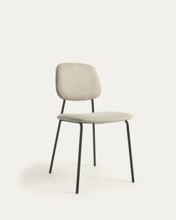 Thanks to its materials and updated retro style, this characterful chair will never go unnoticed. The combination of oak veneer and steel are complemented by the chenille-effect fabric. A star is born and its name is Benilda.