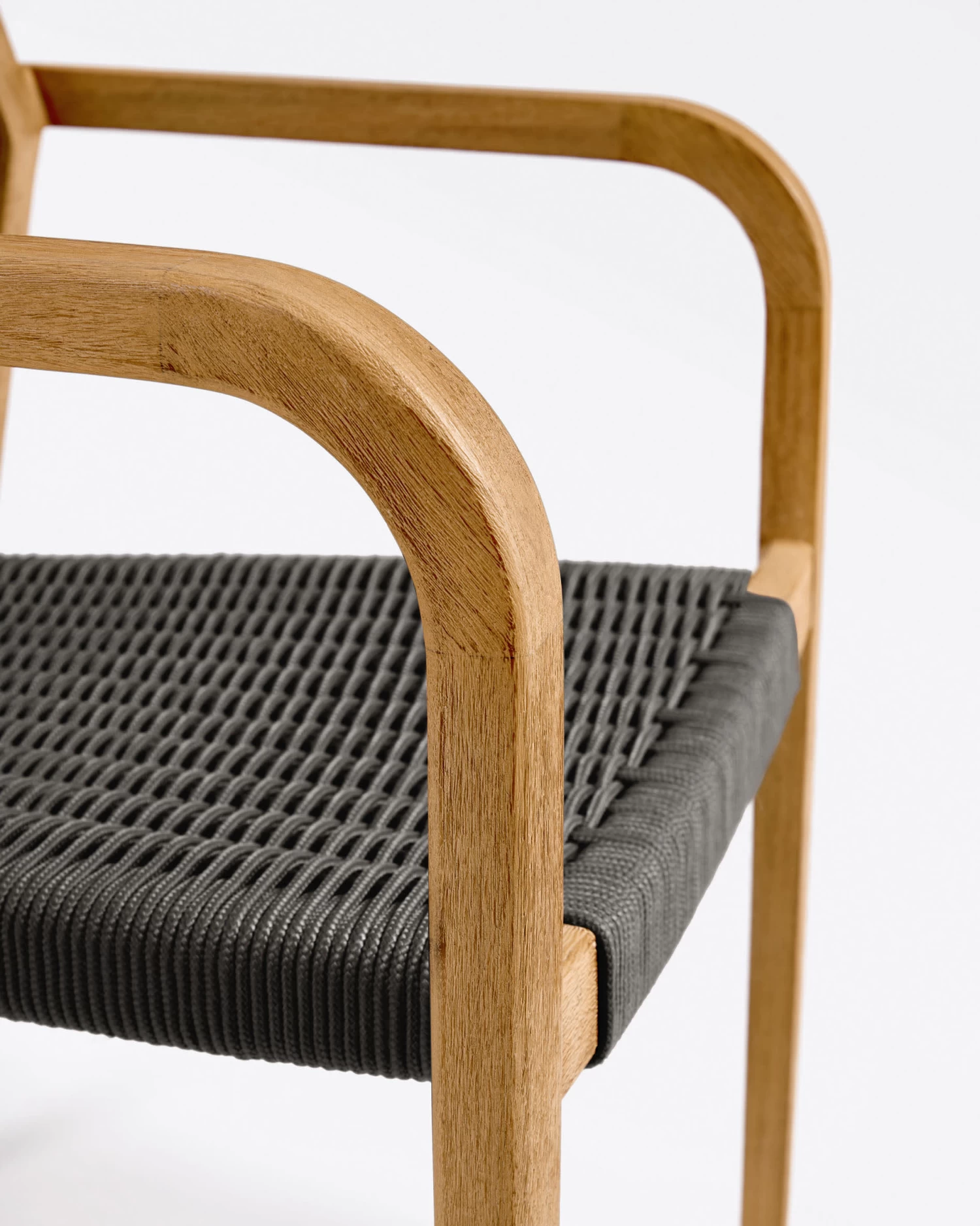 - Stackable chair with armrests. Made from sustainable solid acacia wood.