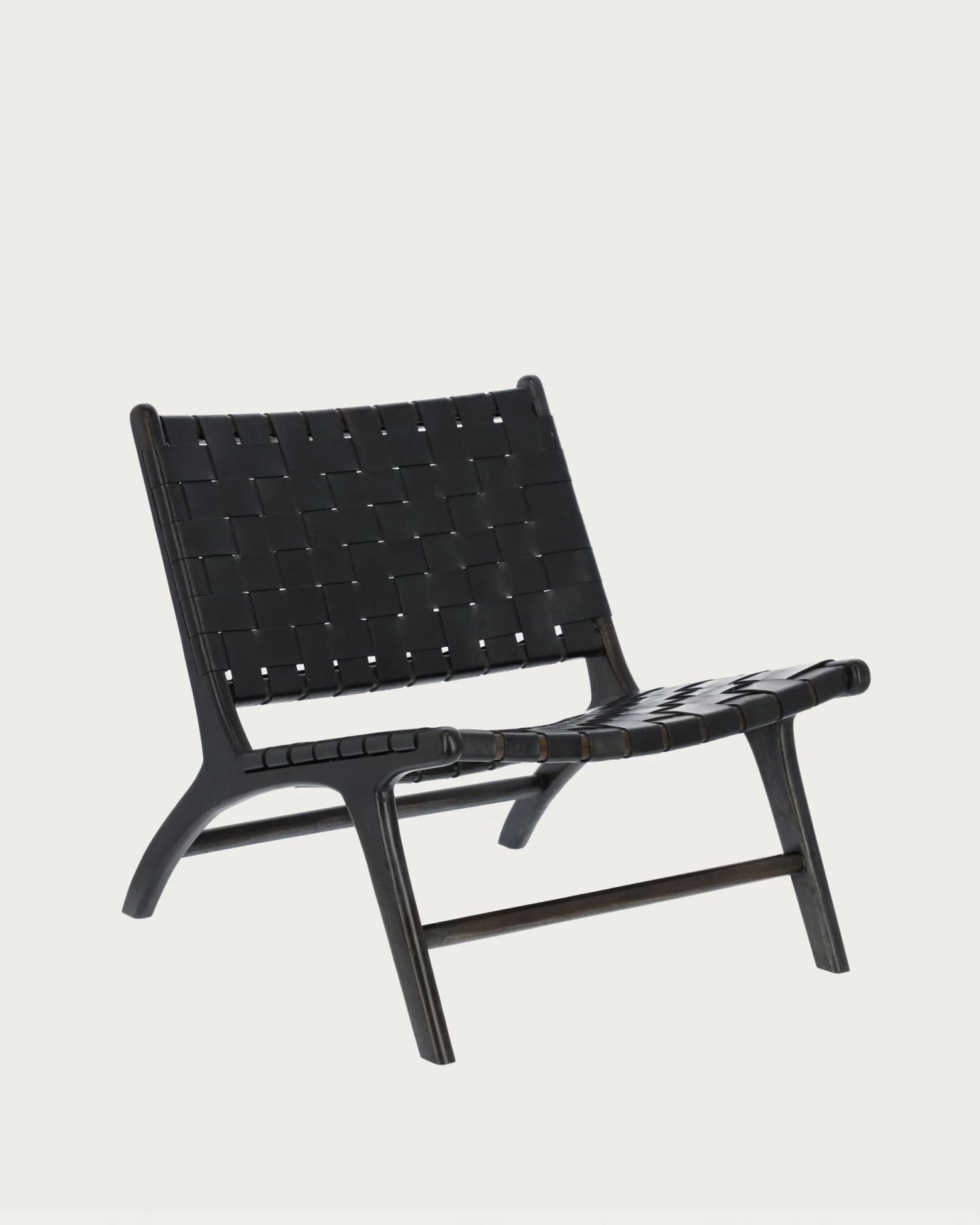 The back and seat of the Calixta armchair is made black hand-braided leather straps. The structure is made of solid mungur wood, and it is also tinted in black to maintain its black lover’s look. Due to being natural materials, each armchair has its own streaks, tones and textures, making each piece exclusive and unrepeatable. Moreover, the fact that they are not synthetic makes them environmentally friendly. Now, make yourself comfortable with style.