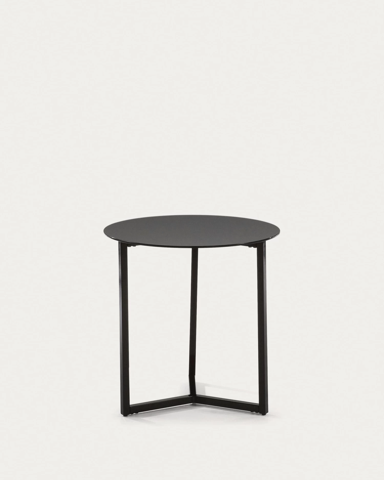 Coffee table with steel legs in epoxy painted. Top in black tempered glass.