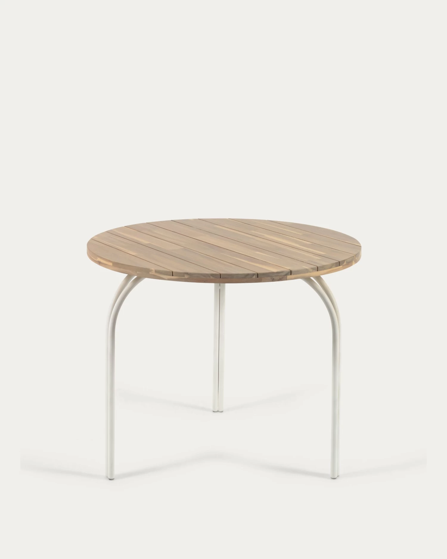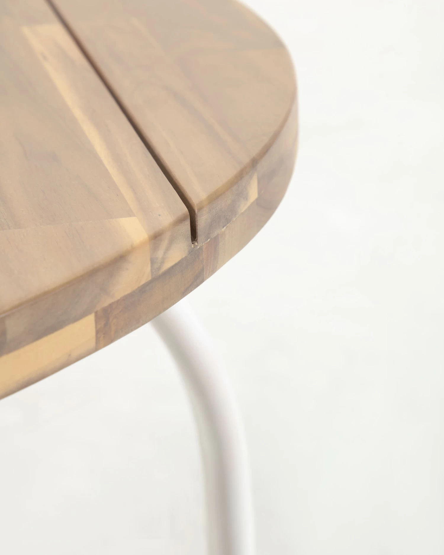- Table made from solid acacia wood with smooth natural finish.