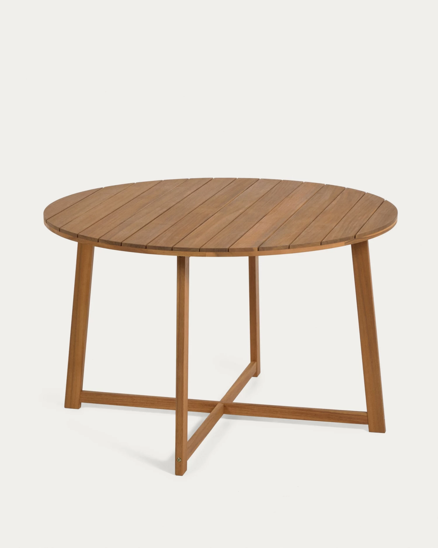 - Round table measuring 120 cm, designed to suit indoor as well as outdoor spaces.