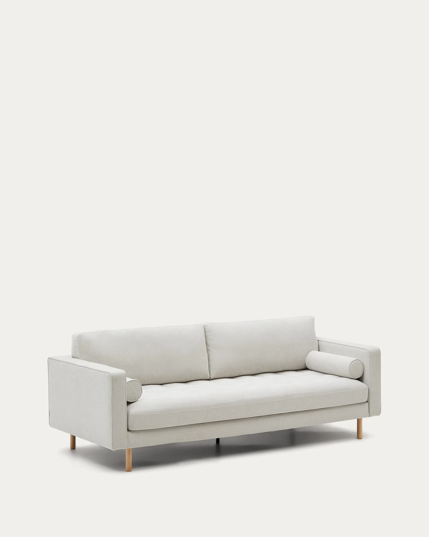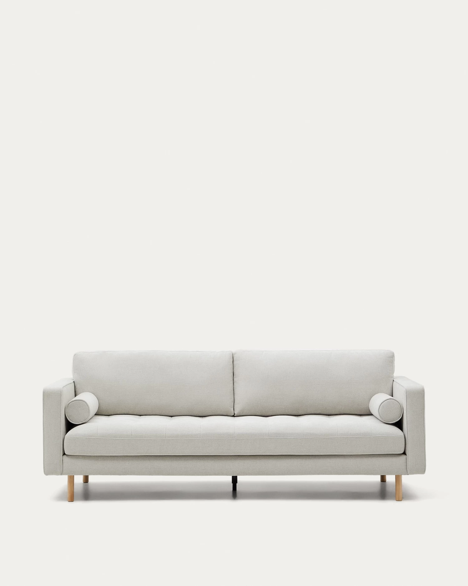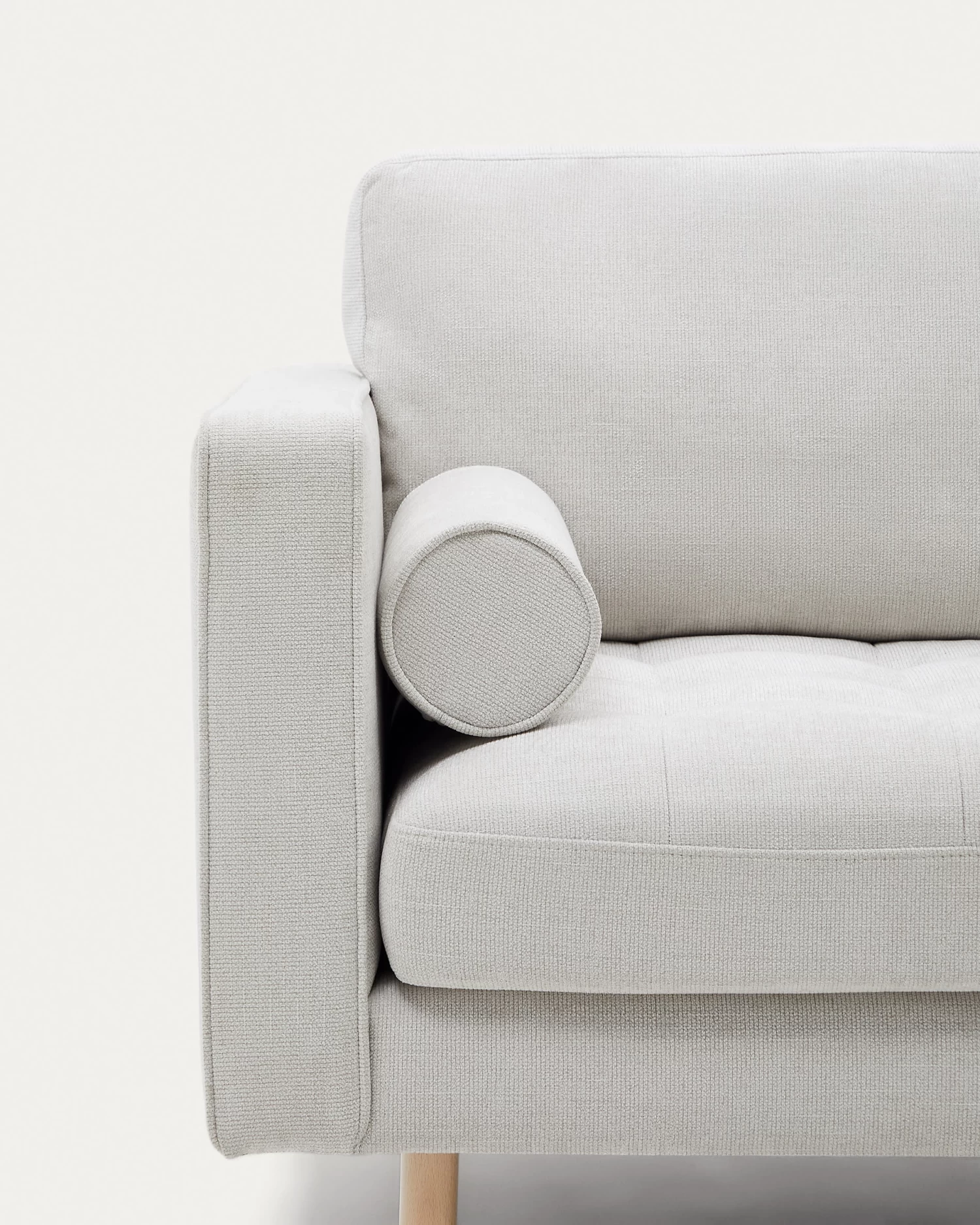 - Solid beech wood legs with natural finish.