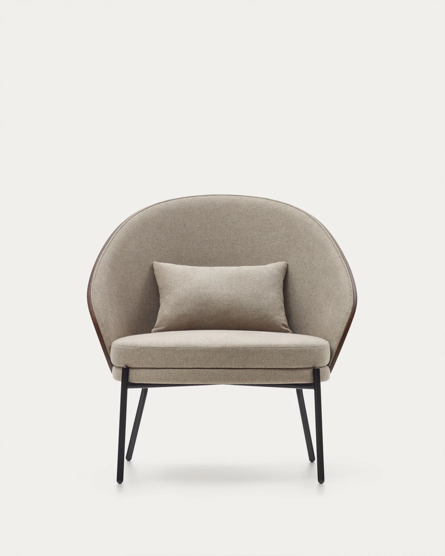 - Upholstered in a light brown chenille fabric. Metal structure painted in a matte black colour.