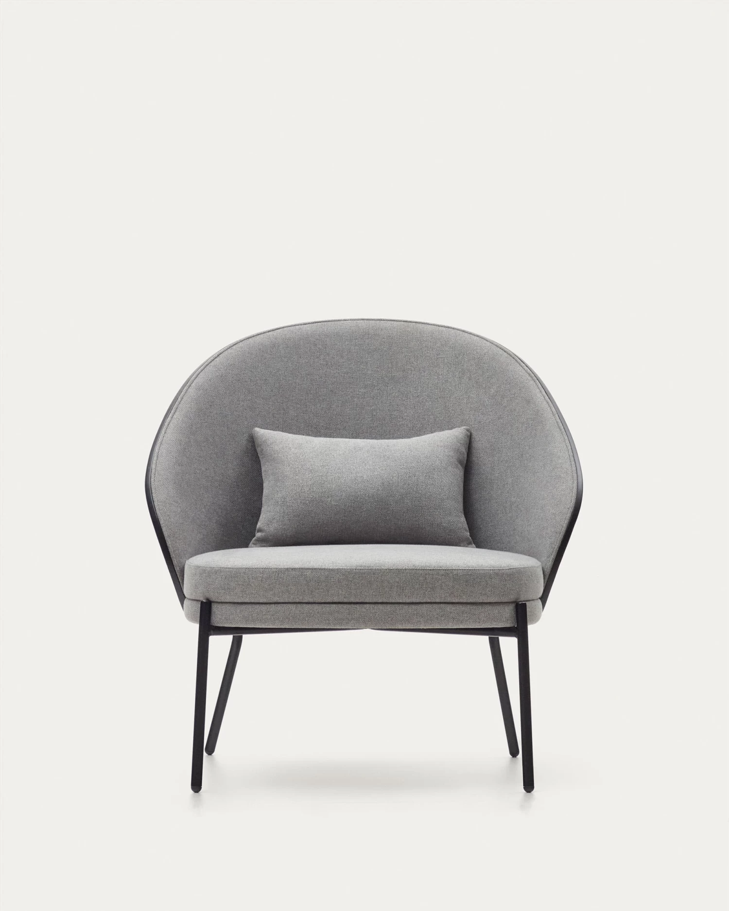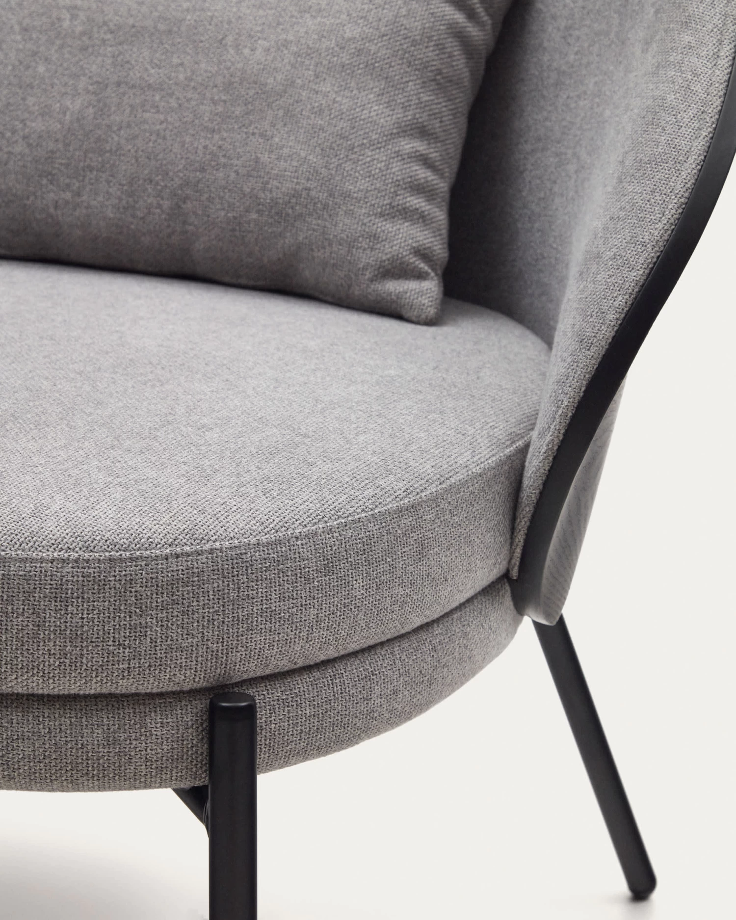 - Upholstered in a light grey chenille fabric Metal structure painted in a matte black colour.