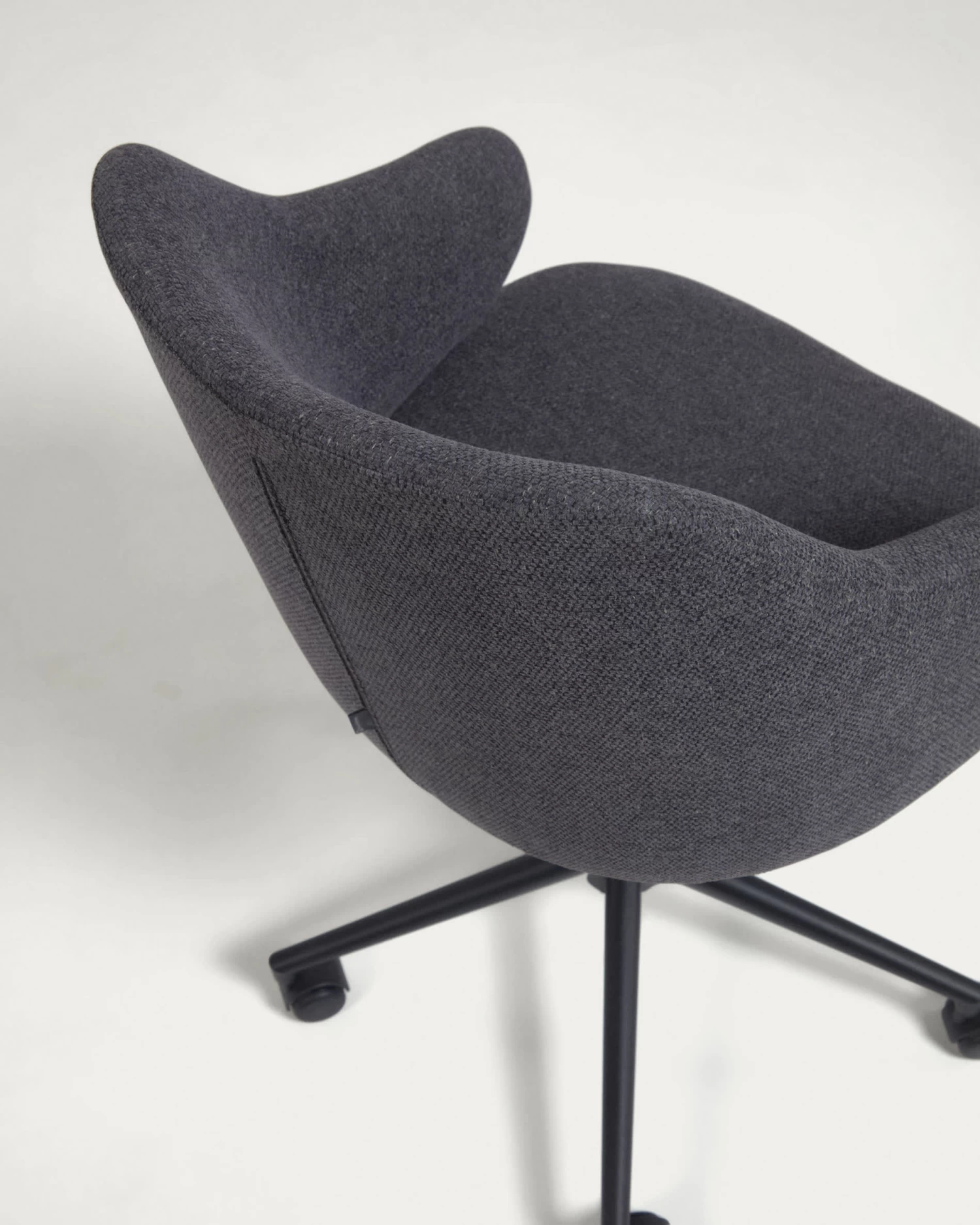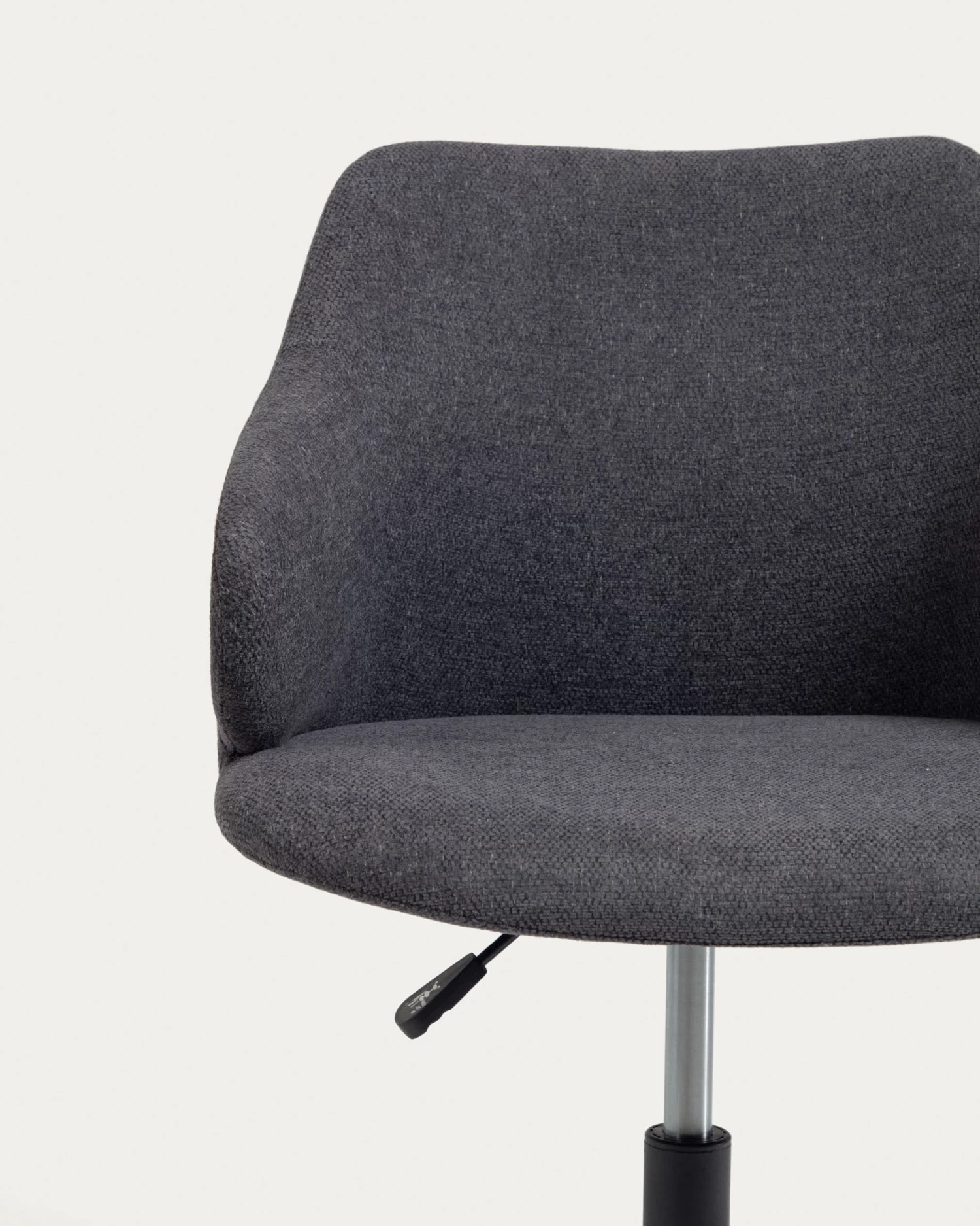 - Swivel chair with adjustable height, a matt black steel frame.