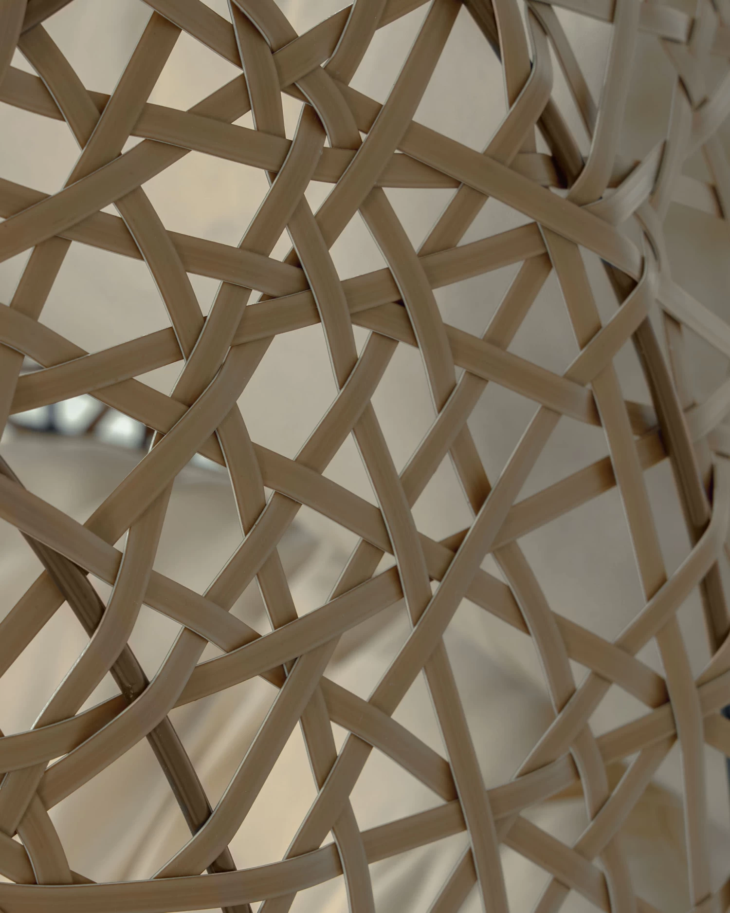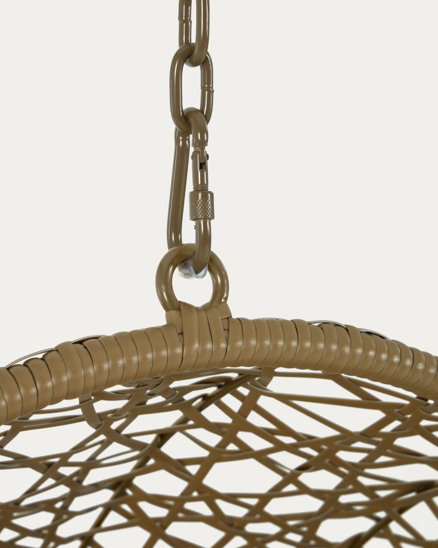 - Hanging armchair made of hand-braided brown polyrattan.