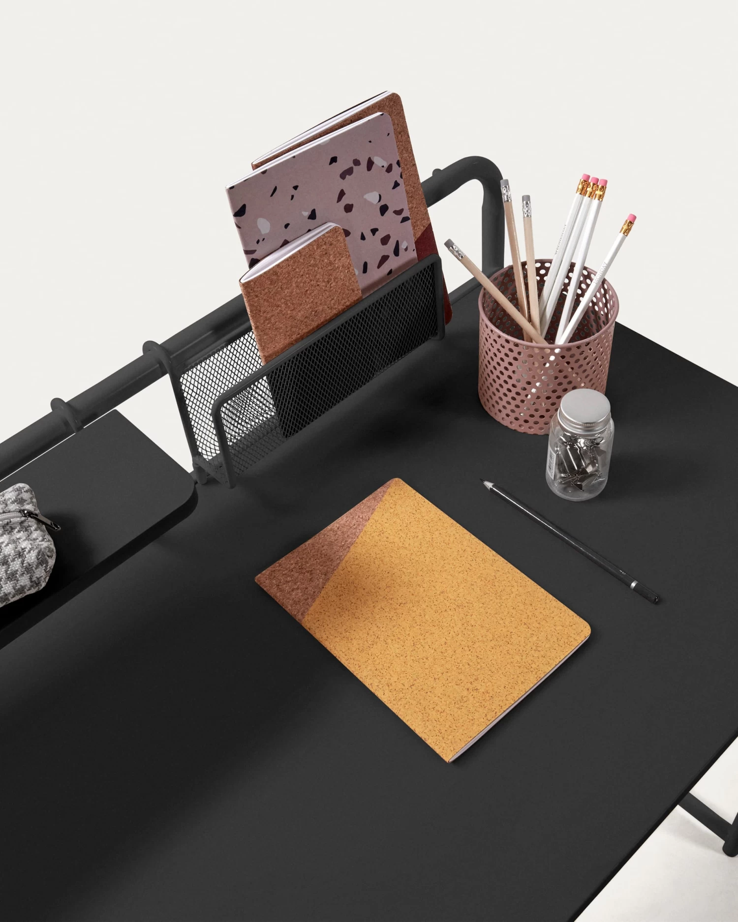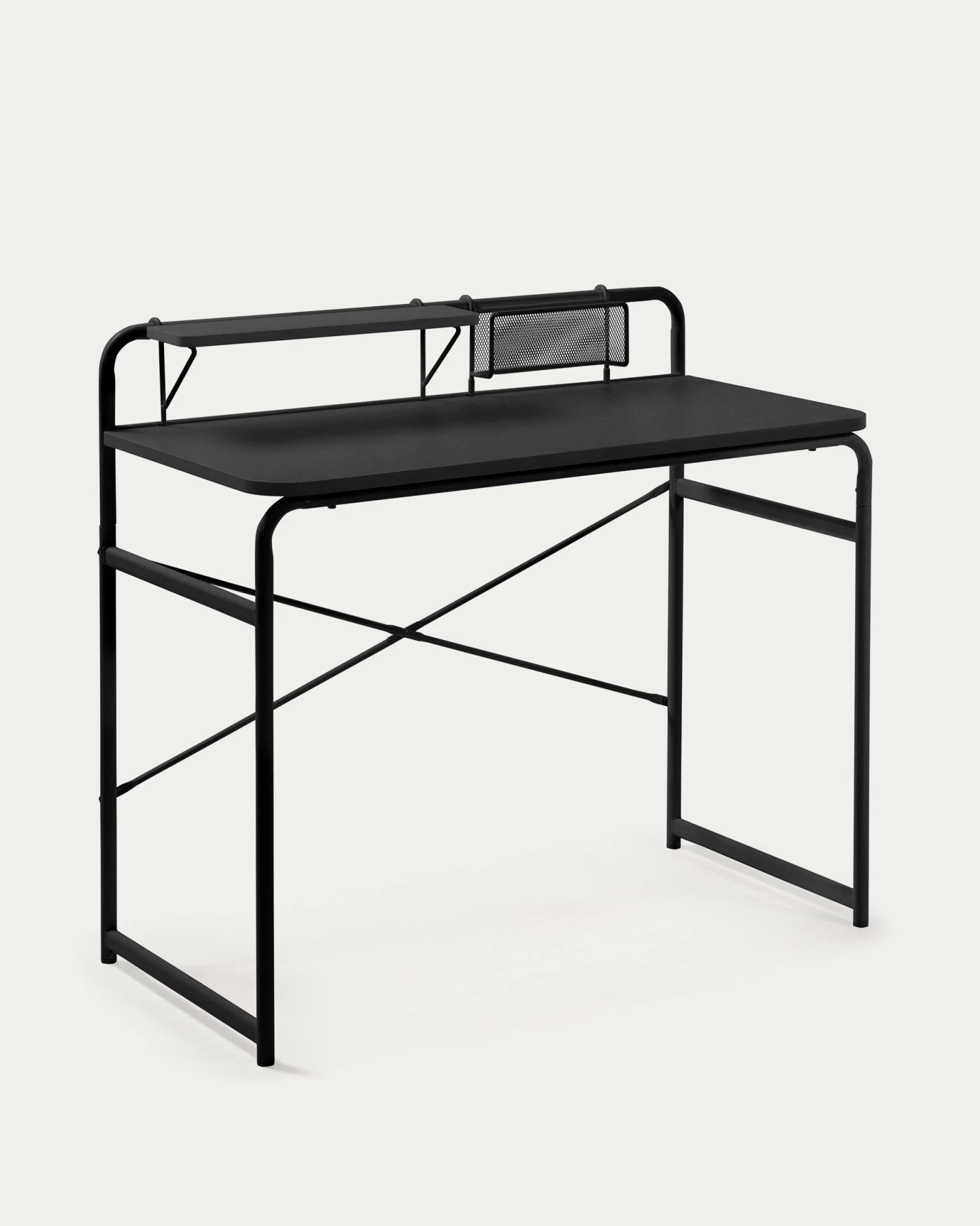 The Foreman desk is a steel structure with a black top. What’s more, it has a rack where you can store your desk items and an accessory for storing envelopes or notes. Work hard, live passion.