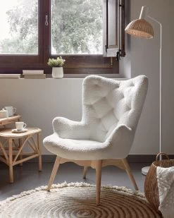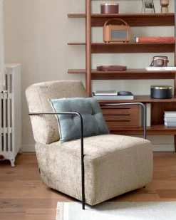 Eamy Light Grey Armchair In An Ash Wood Veneer With A Natural Finish And Black Metal | Kave Home