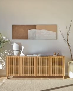 Alguema Tall Sideboard With 2 Doors In Oak Wood Veneer With Natural Finish 100 X 1635 Cm | Kave Home