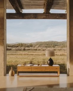 Alguema TV Stand With 3 Drawers In Oak Veneer With Natural Finish 200 X 51 Cm | Kave Home