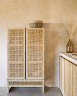Rexit Solid Mindi Wood And Veneer Wardrobe With Rattan 90 X 160 Cm | Kave Home