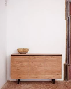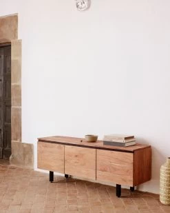 Uxue TV Stand With 3 Solid Acacia Wood Doors In A Natural Finish 150 X 58 Cm | Kave Home
