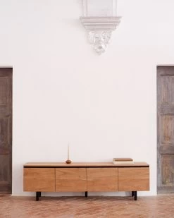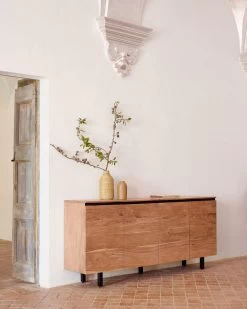 Uxue TV Stand With 4 Solid Acacia Wood Doors In A Natural Finish 200 X 58 Cm | Kave Home