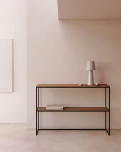 Yoana Console Table With A Walnut Veneer And Painted Black Metal Structure, 120 X 80 Cm