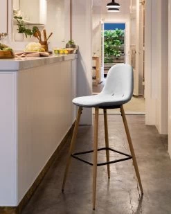 Eamy Light Grey Stool In An Ash Wood Veneer With A Natural Finish And Black Metal 65 Cm | Kave Home