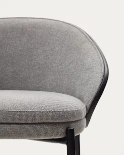 Eamy Light Grey Stool In An Ash Wood Veneer With A Black Finish And Black Metal 65 Cm | Kave Home