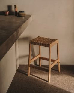 Yalia Stool In Solid Oak Wood In A 100% FSC Natural Finish And Rope Cord Height 65 Cm | Kave Home