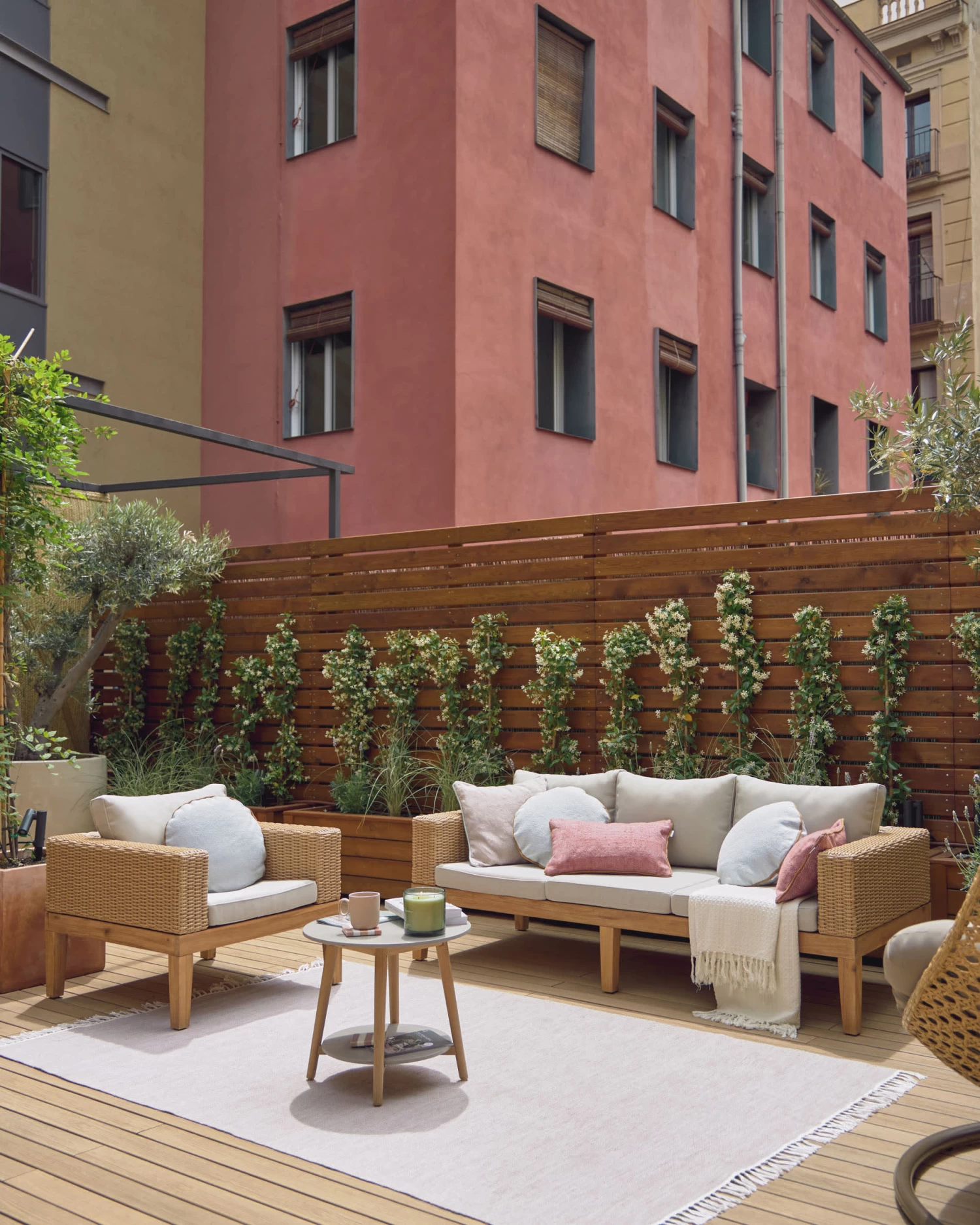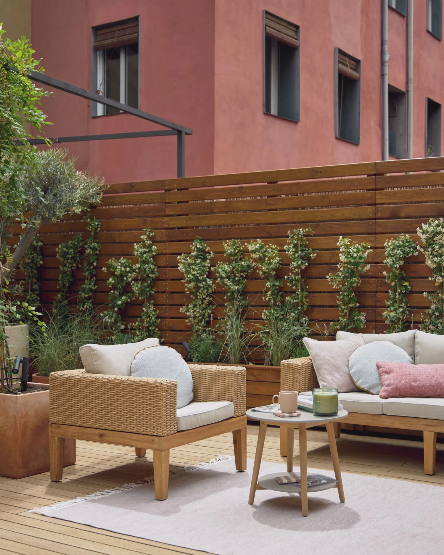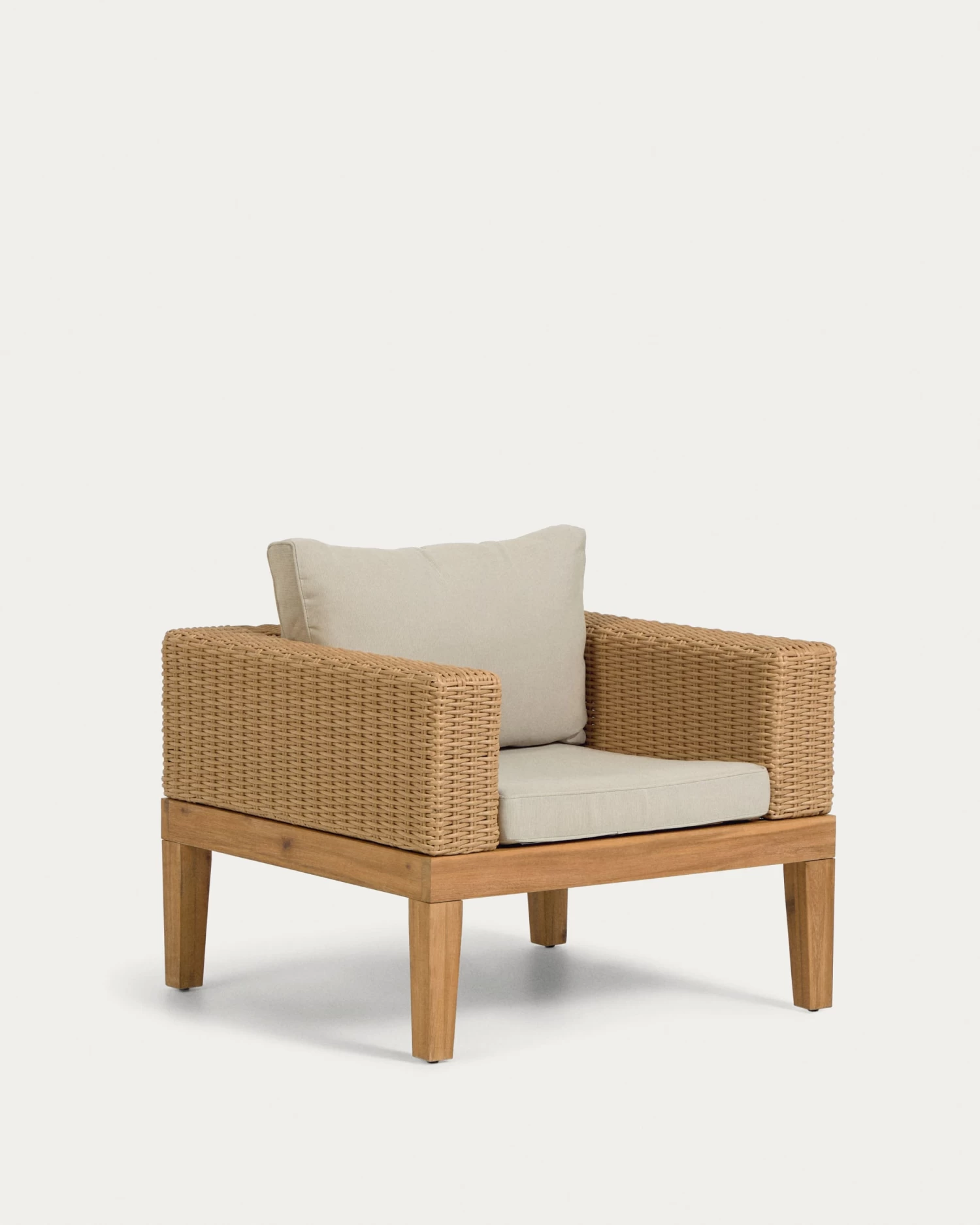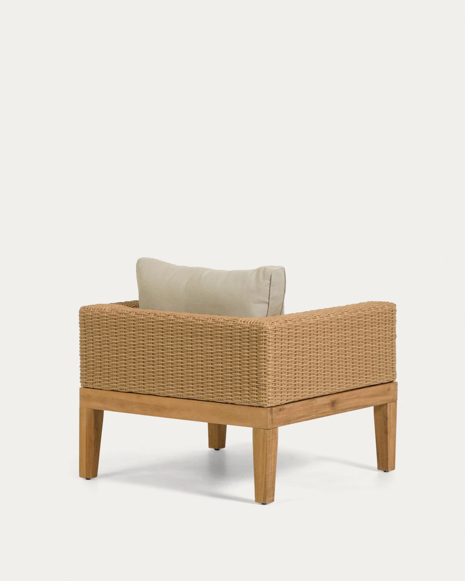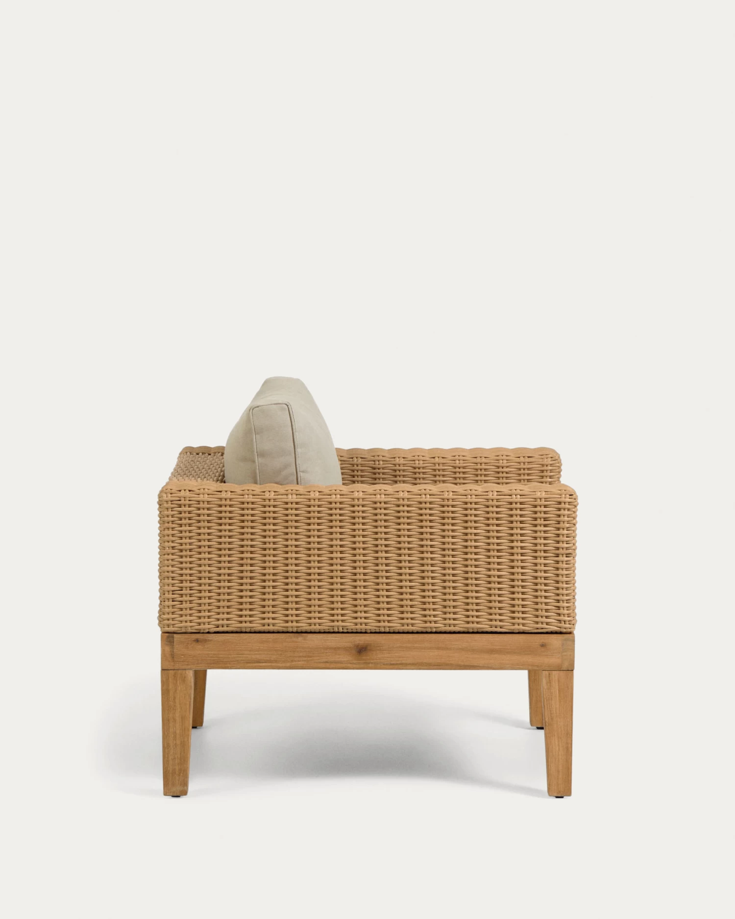 - 35% Synthetic wicker, 30% Aluminium, 20% Acacia wood (Acacia Mangium), 10% Fabric, 5% Foam PU (Polyurethane)