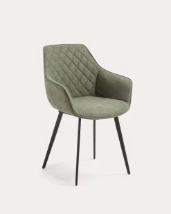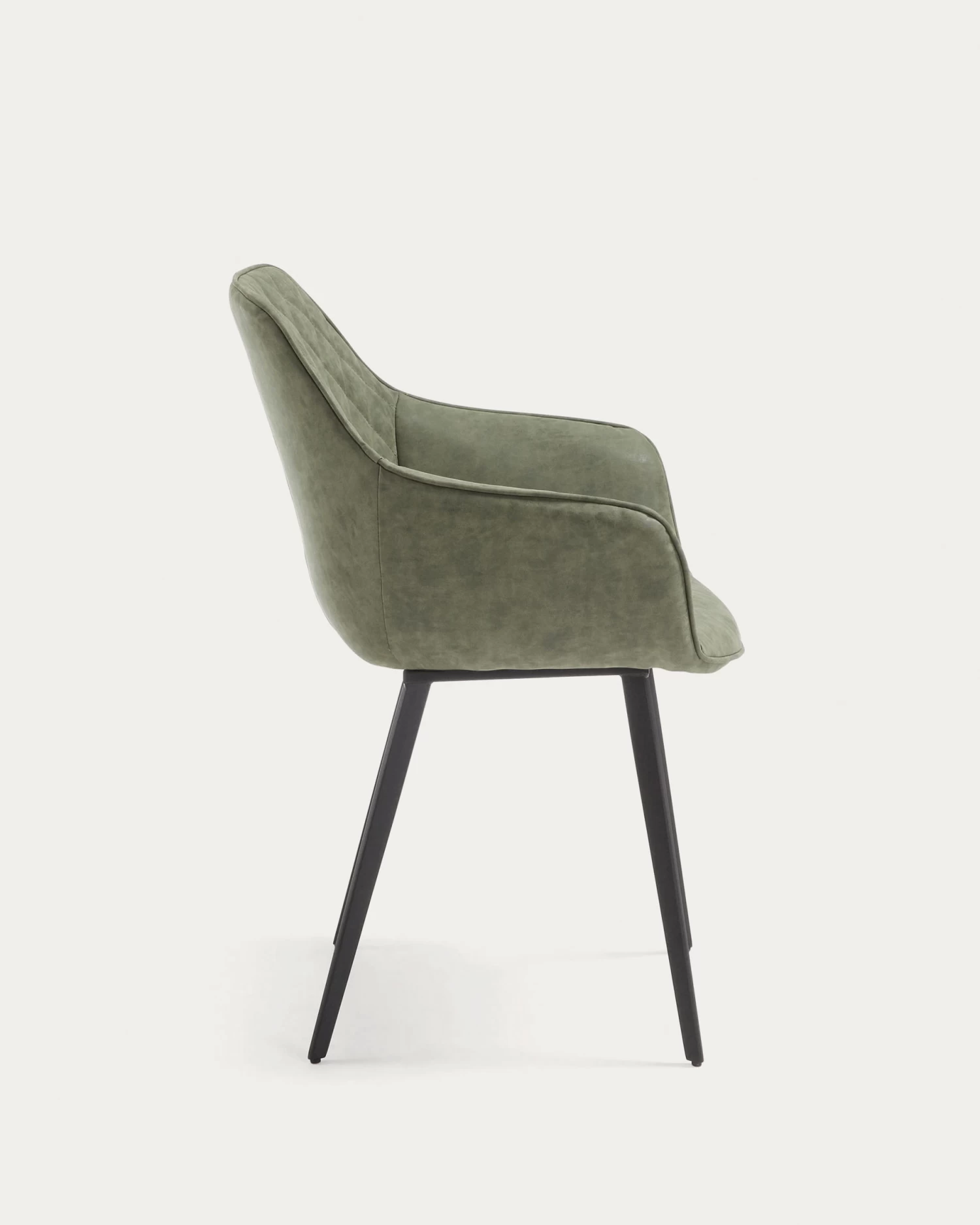Chair upholstered in synthetic leather. Powder coated steel legs.