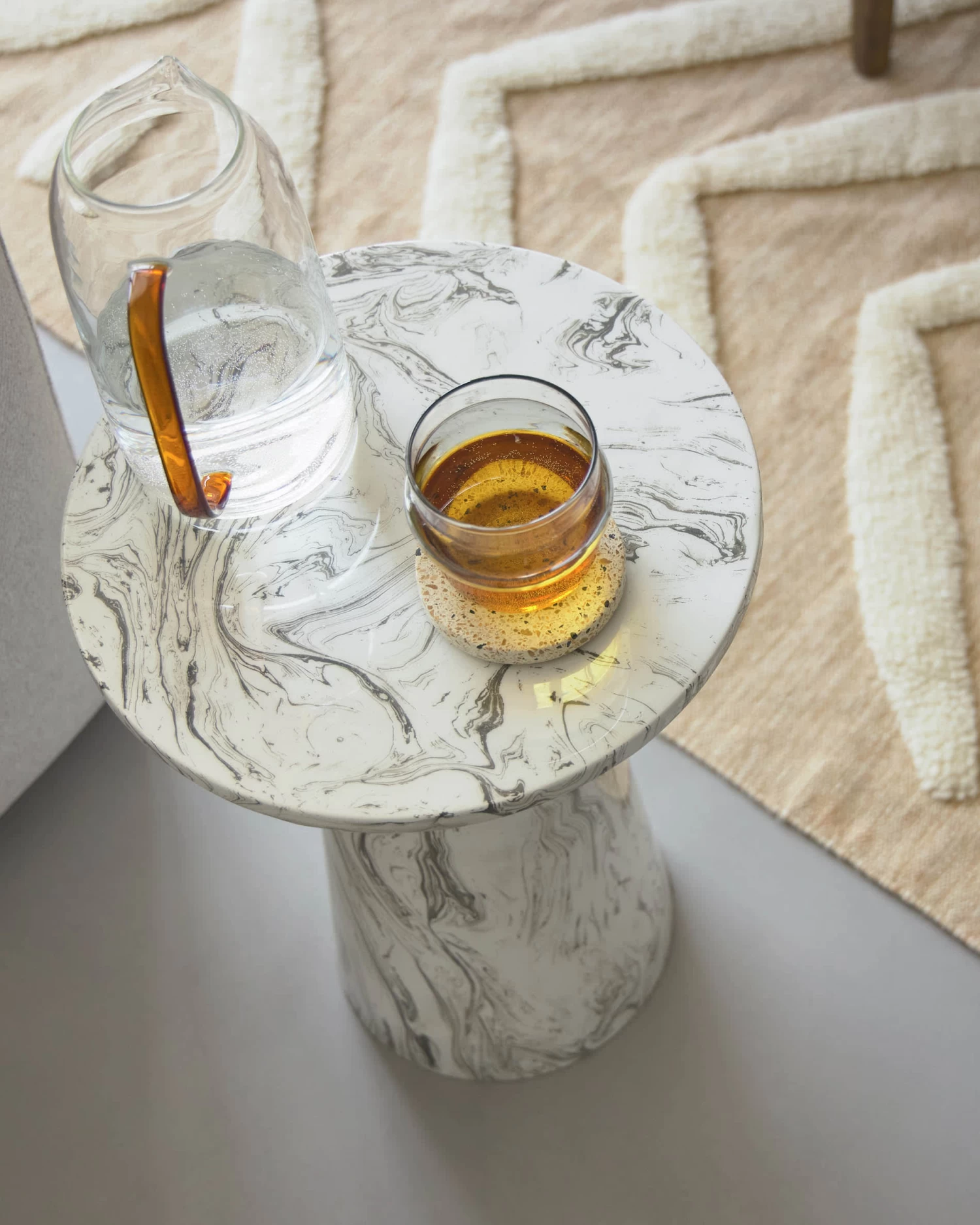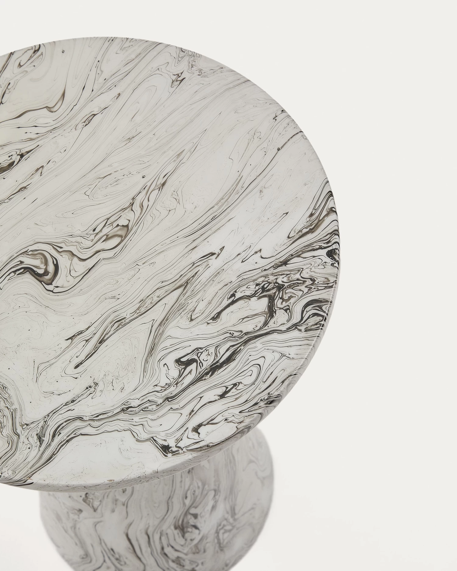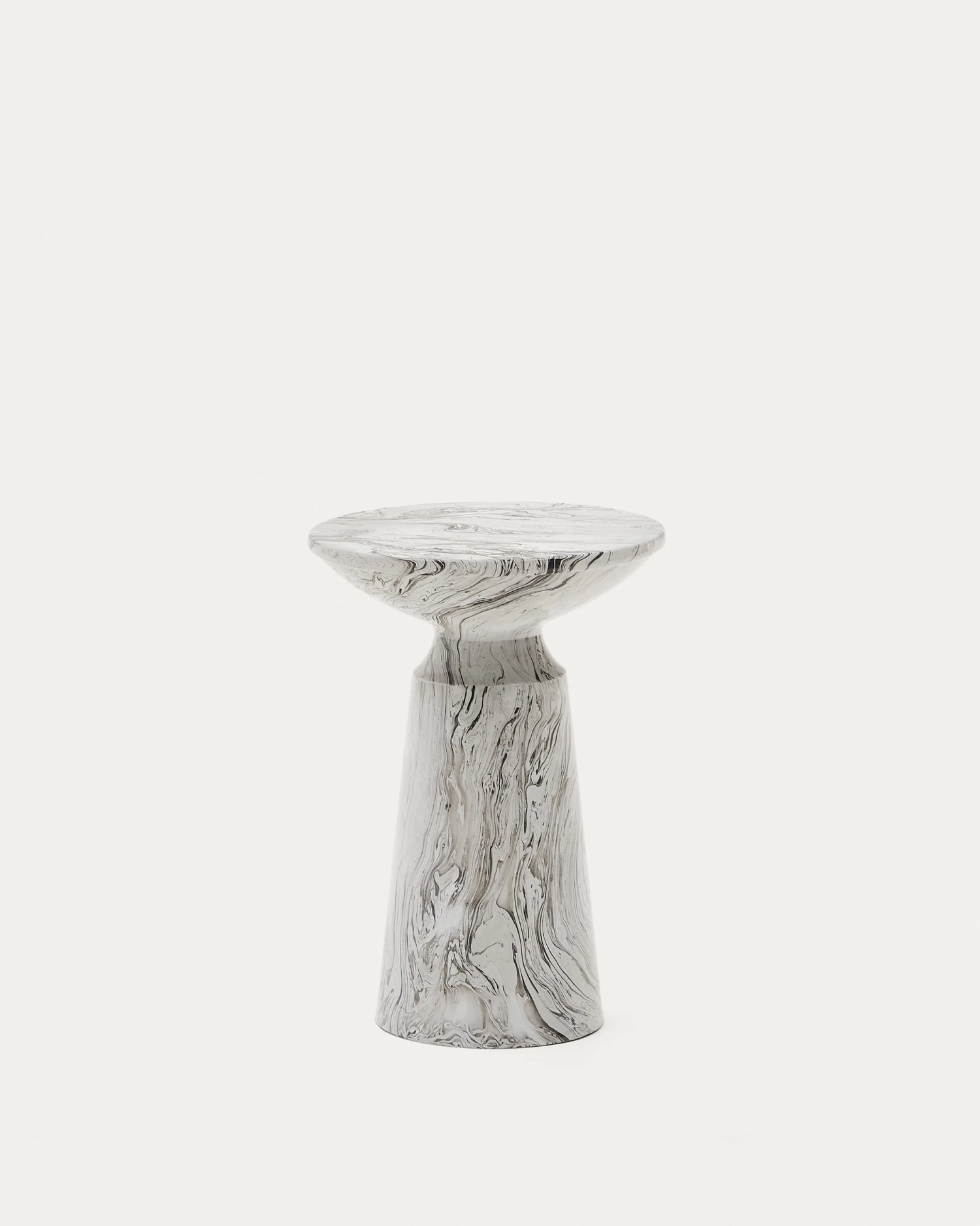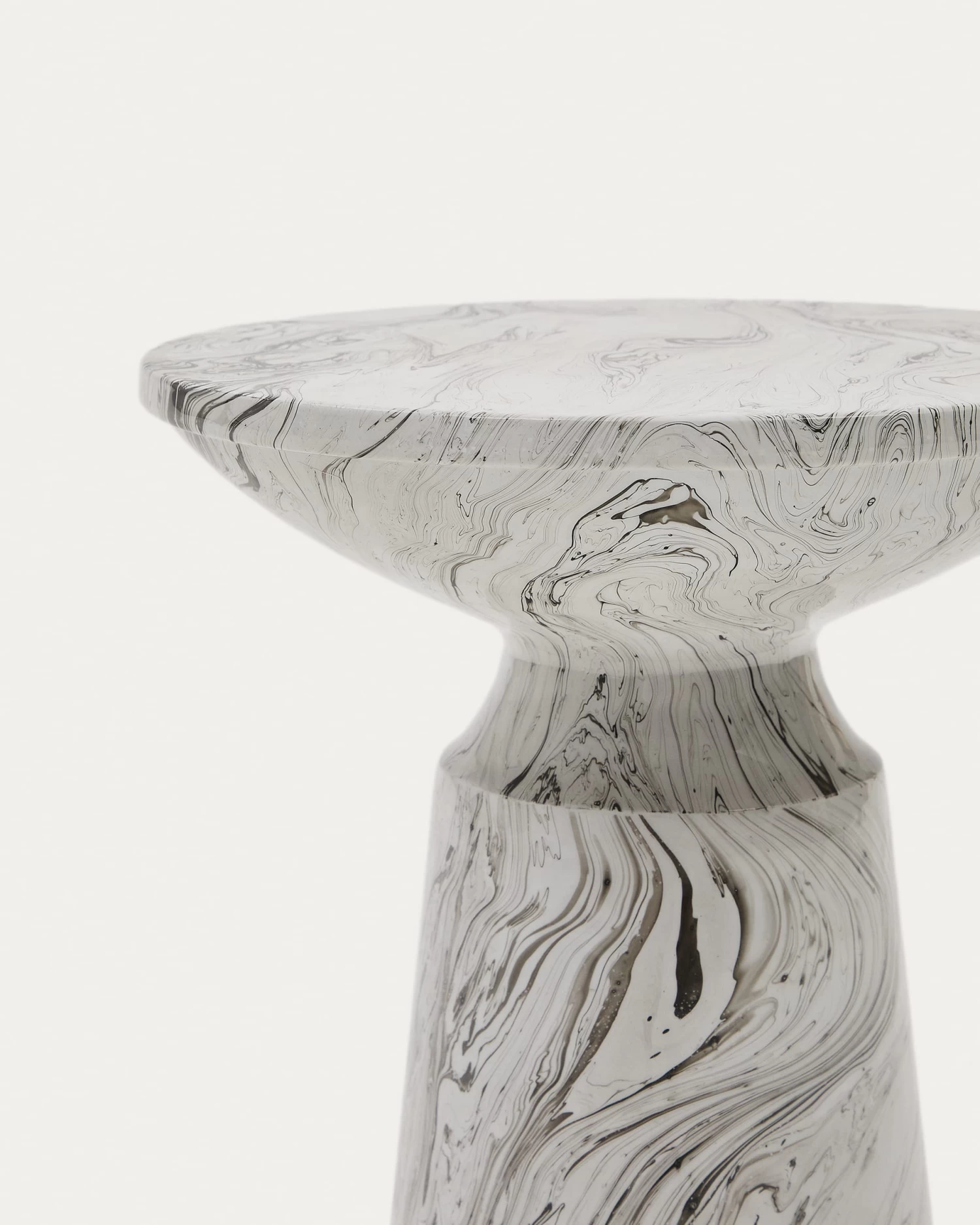 The Kesbury side table is made out of sheets of iron and enamelled with a marble effect, blending together white, black and grey. What’s more, each Kesbury side table is unique, since the marble effect is different on each piece.