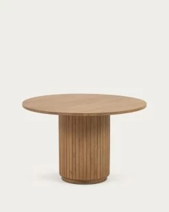 - Round table made from solid sustainable mango wood with natural finish.