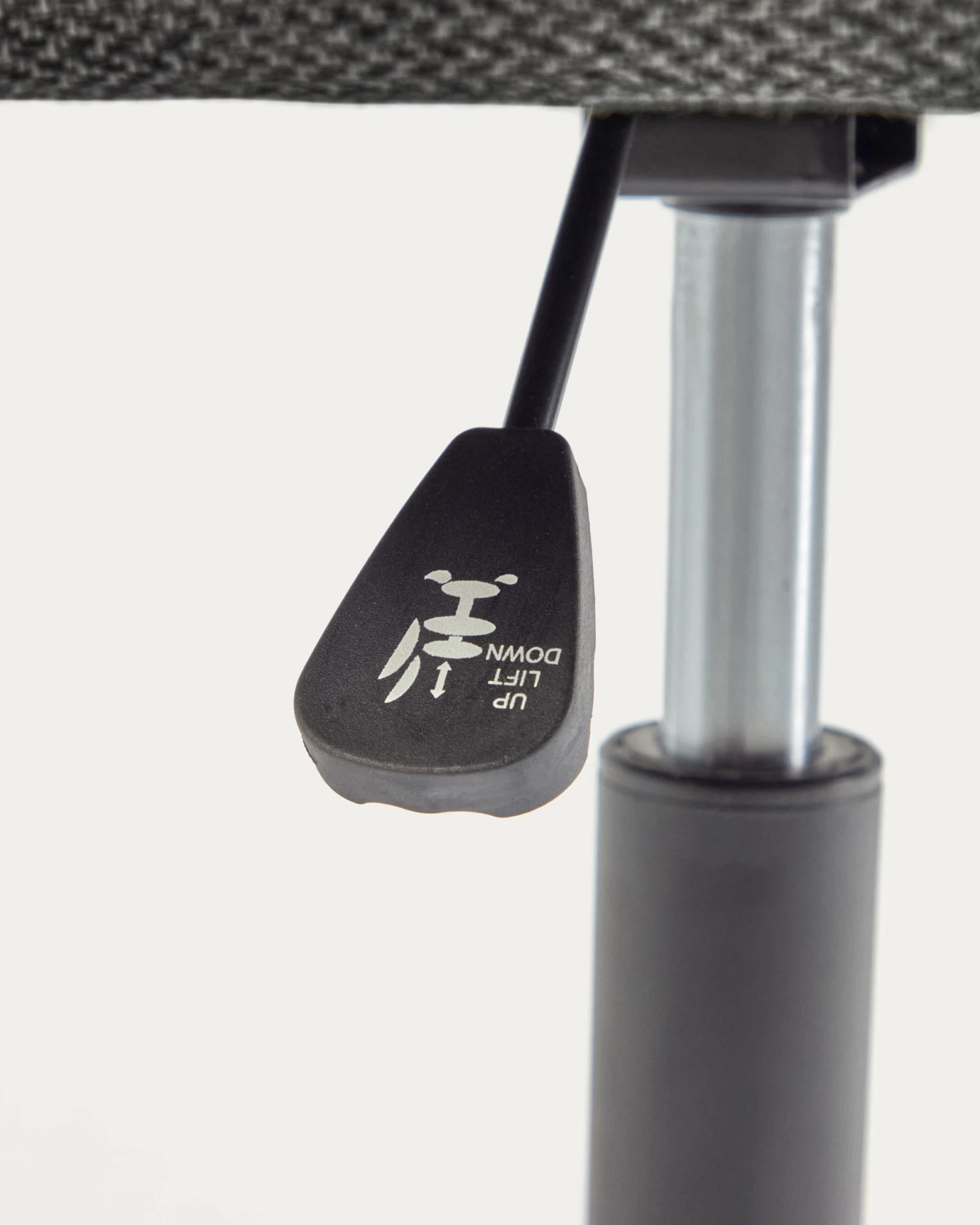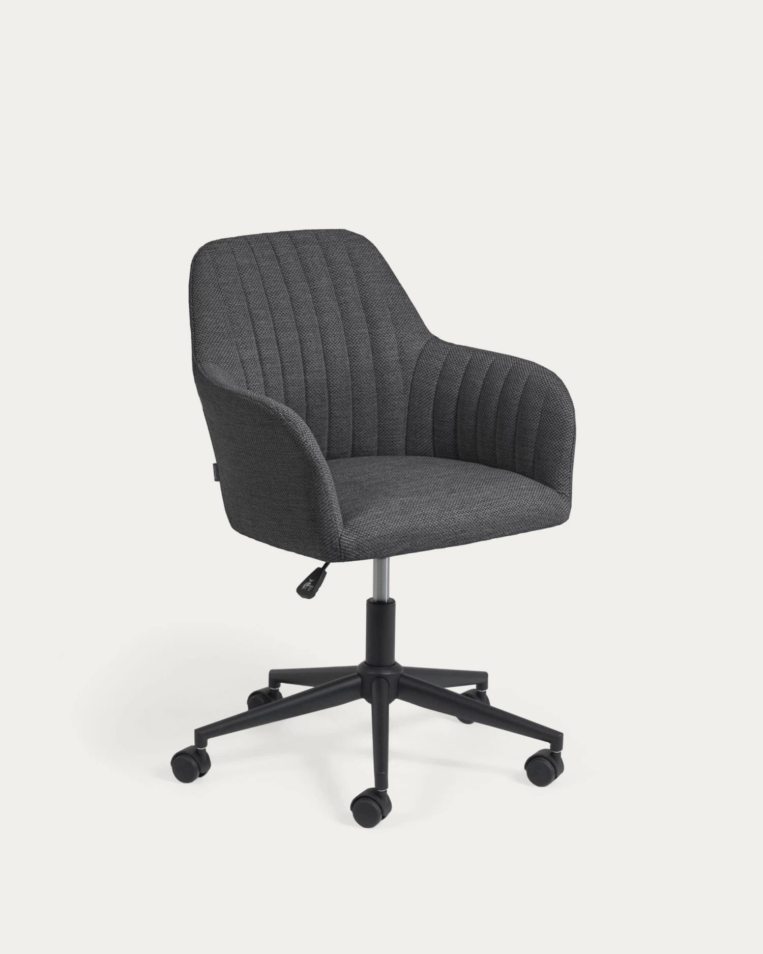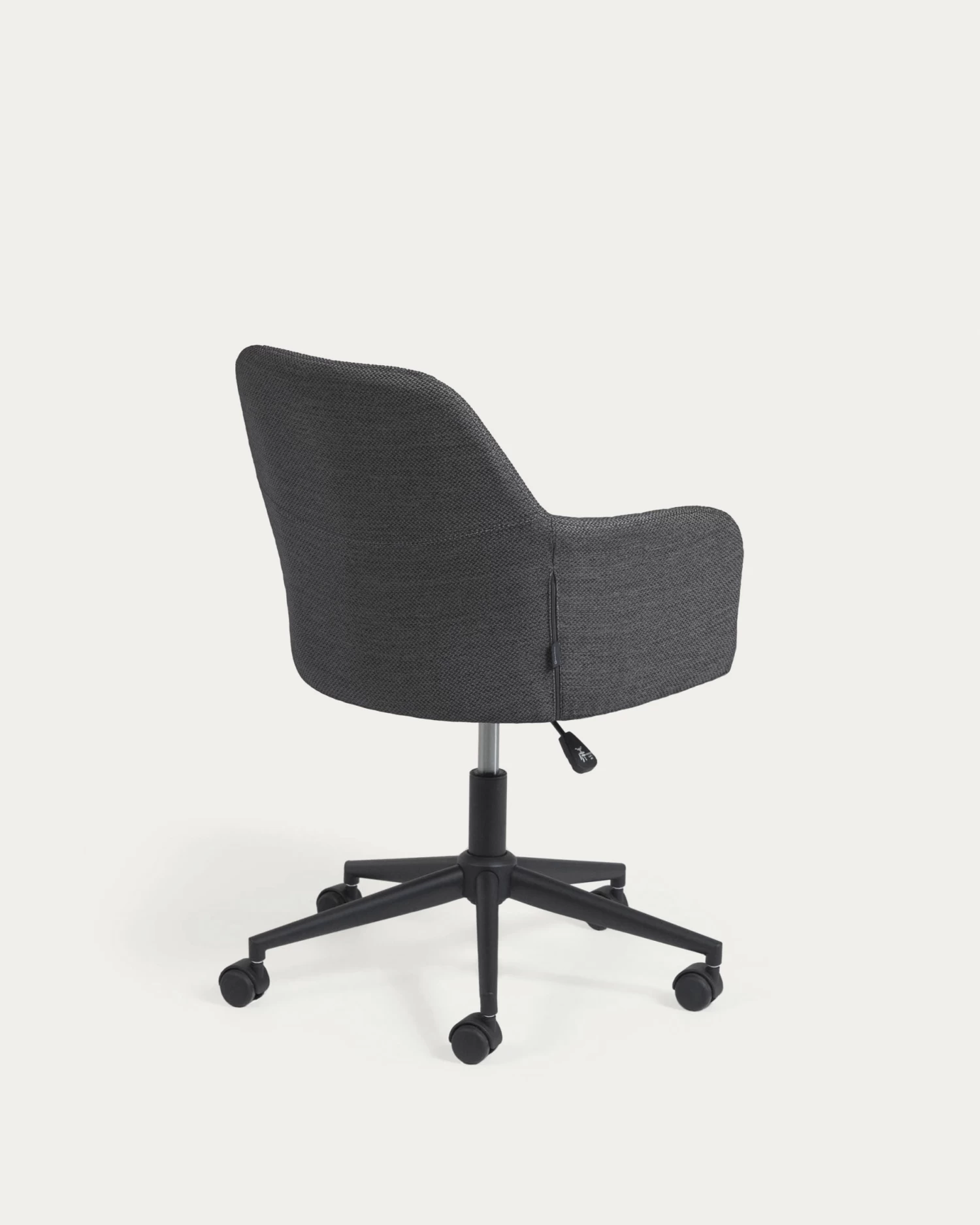 - Swivel chair with adjustable height, a matt black steel frame and wheels that are suitable for wooden floors.