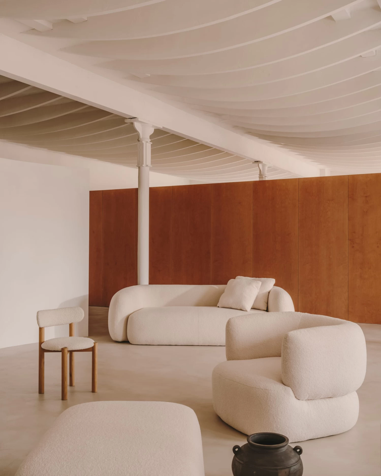 The Kave Home team has designed the Martina armchair for relaxing in a way that cares for the planet. Its silhouette of curved lines and its upholstery made of 100% recycled polyester with a shearling effect make it the perfect piece for your living room.