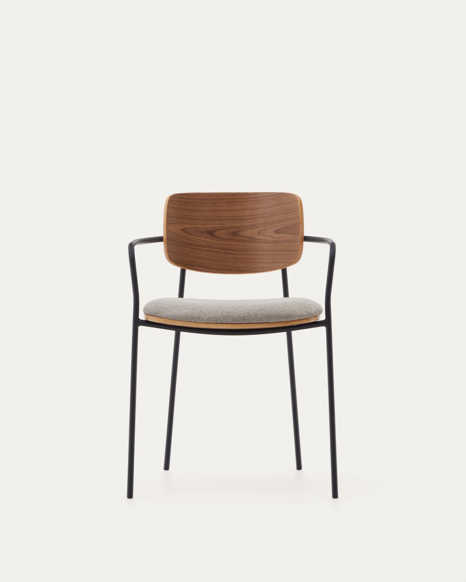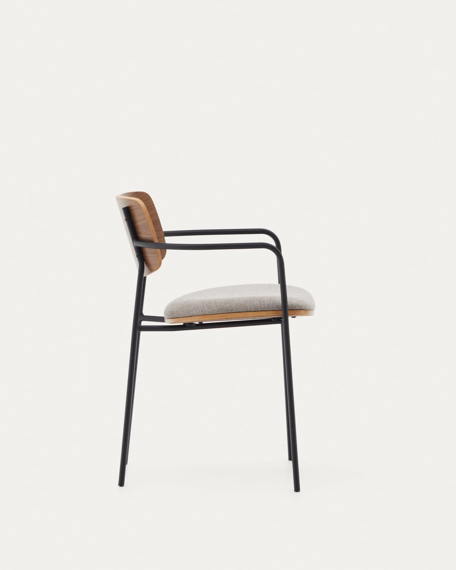 - Chair with metal arms in painted in matt black.