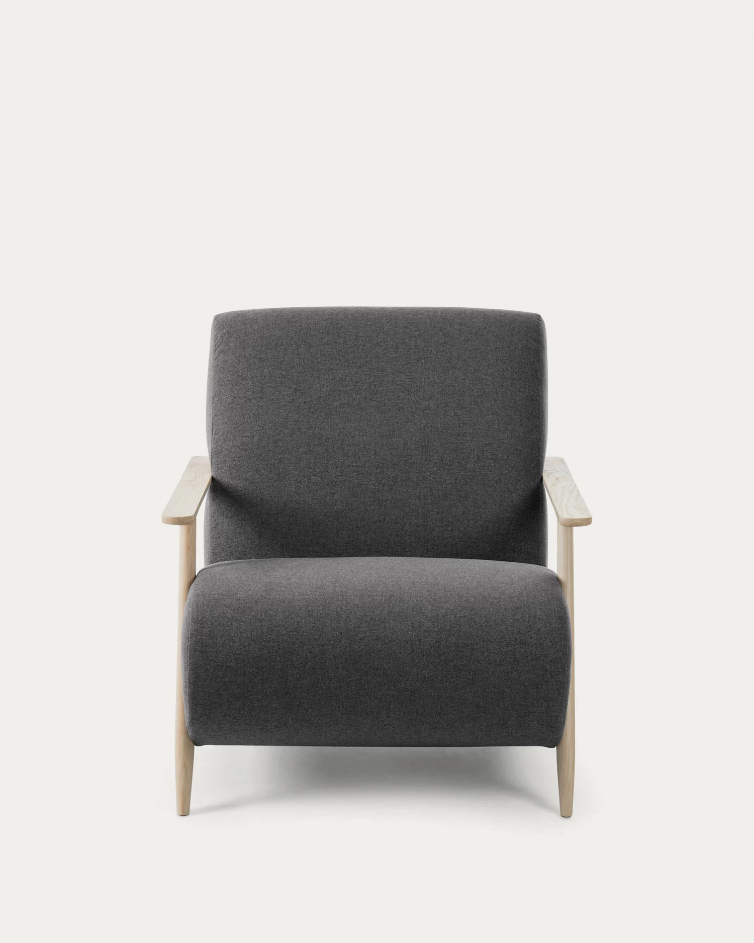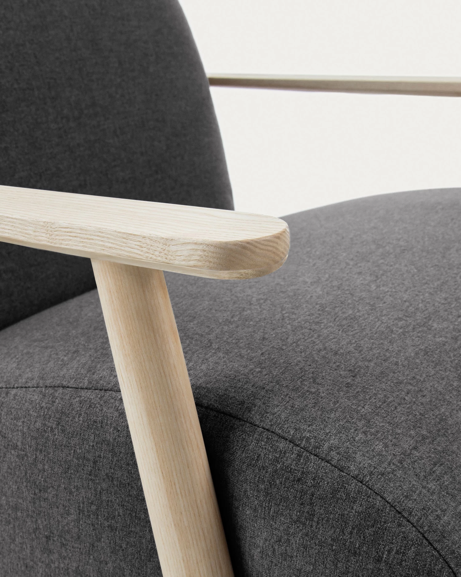 Armchair upholstered with fabric Varese anti-stain Teflon treatment. Arms in solid natural ash wood.