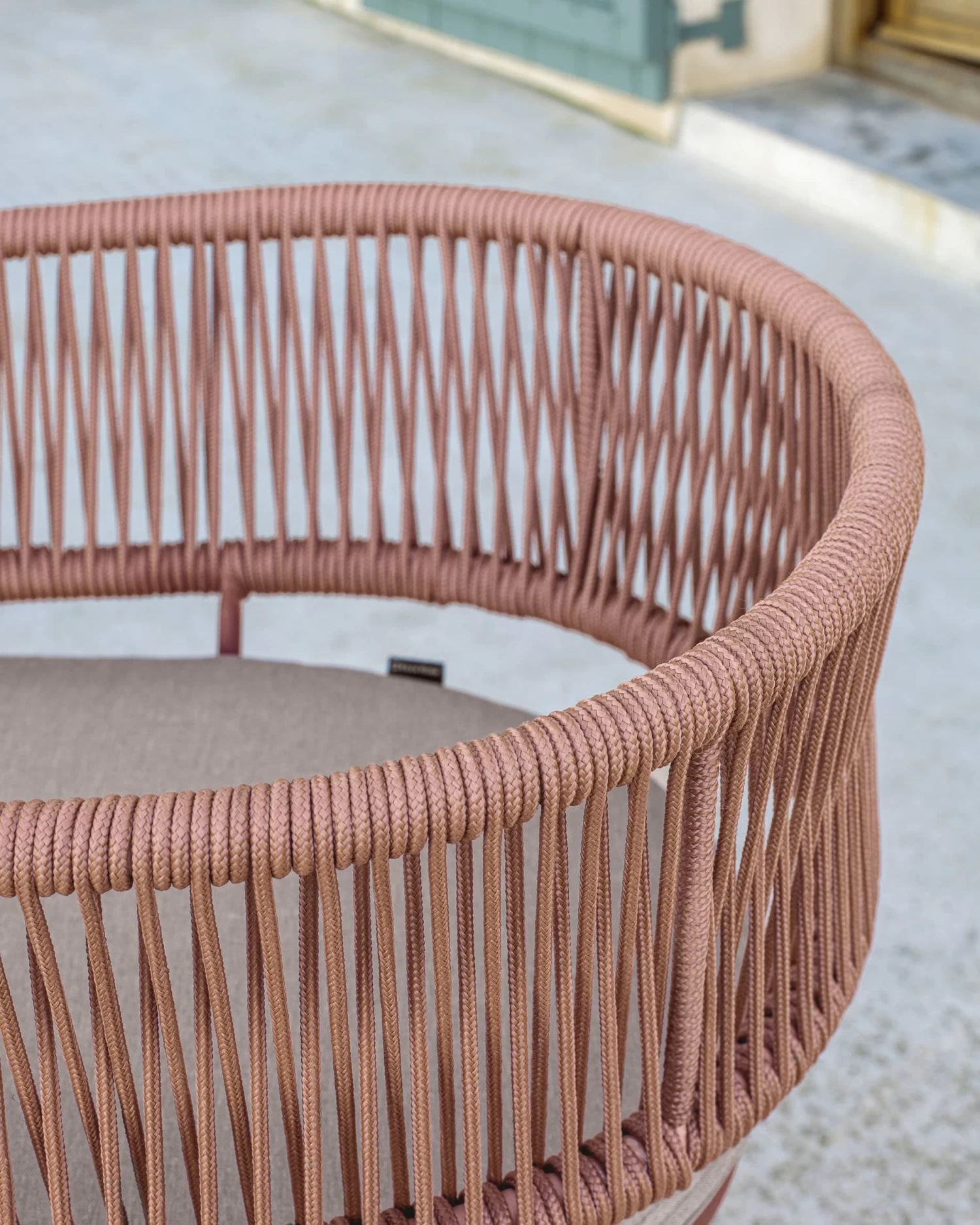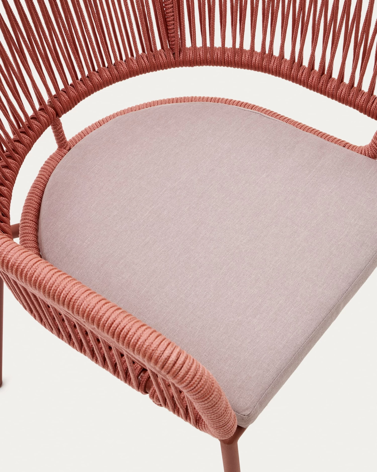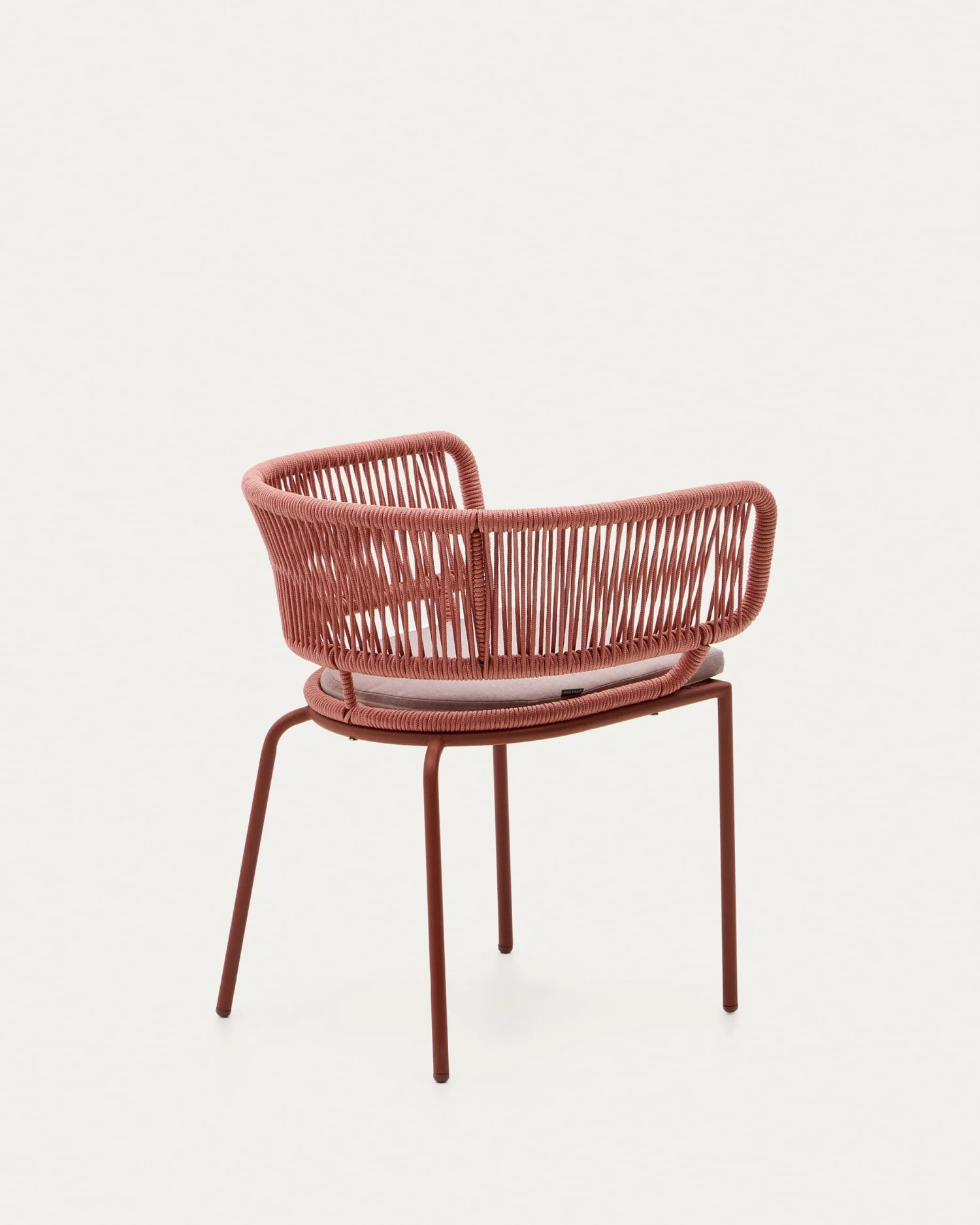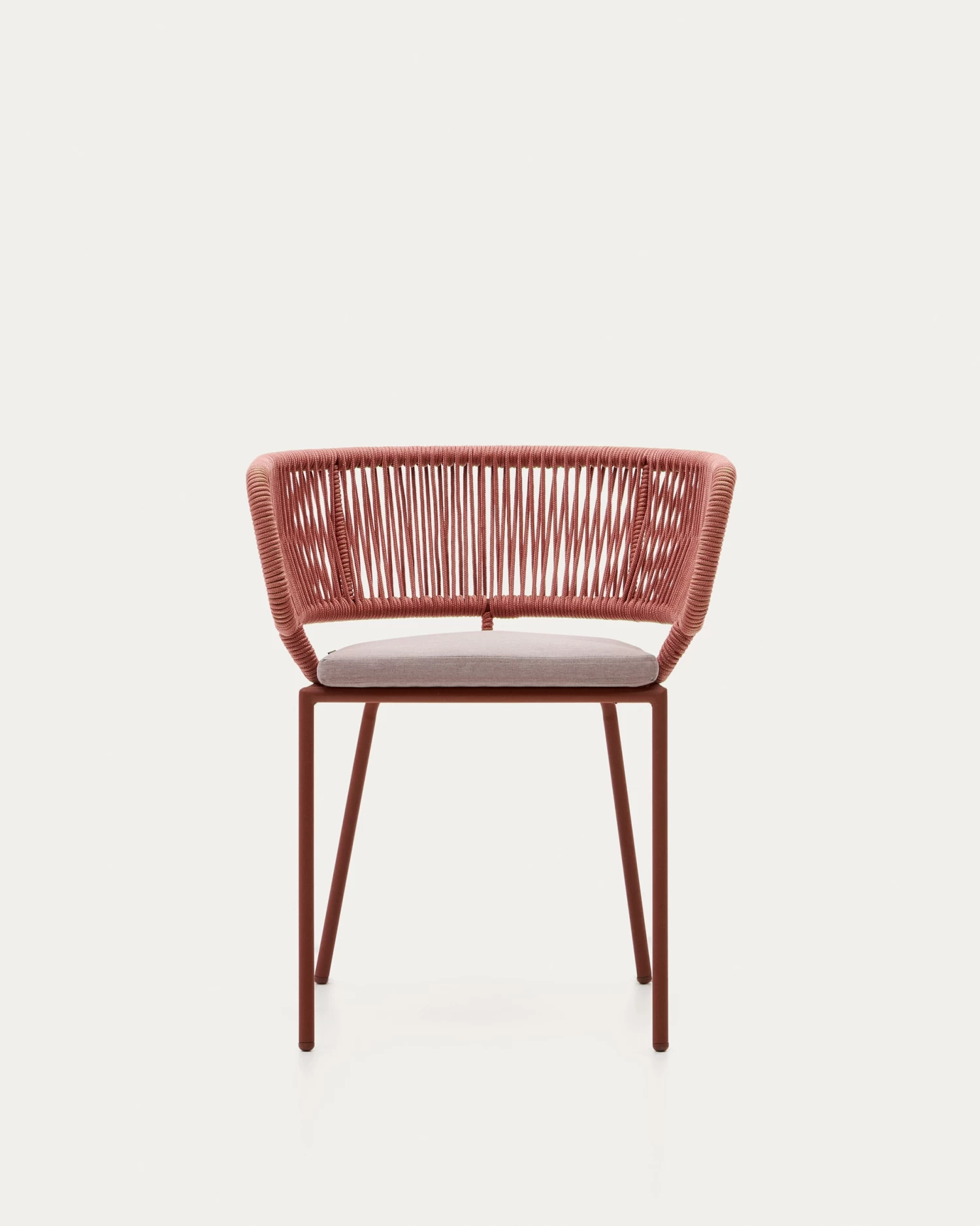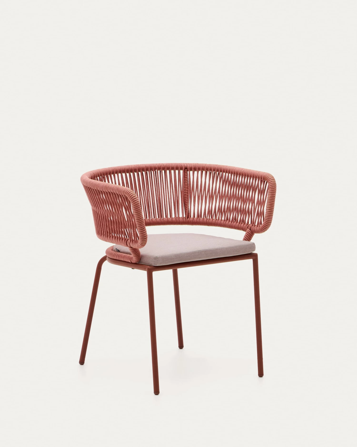 Connect with the great outdoors with our Nadin chair, a fusion of steel and hand-woven cord, both in an earthy, natural terracotta shade. Make a style statement in your covered outdoor spaces with these materials and the colour of the moment.
