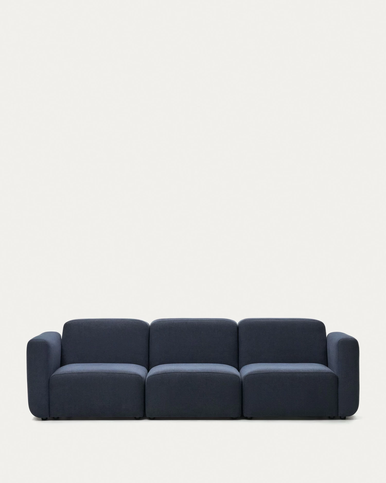 - 3 seater modular sofa upholstered in blue interlock woven fabric.