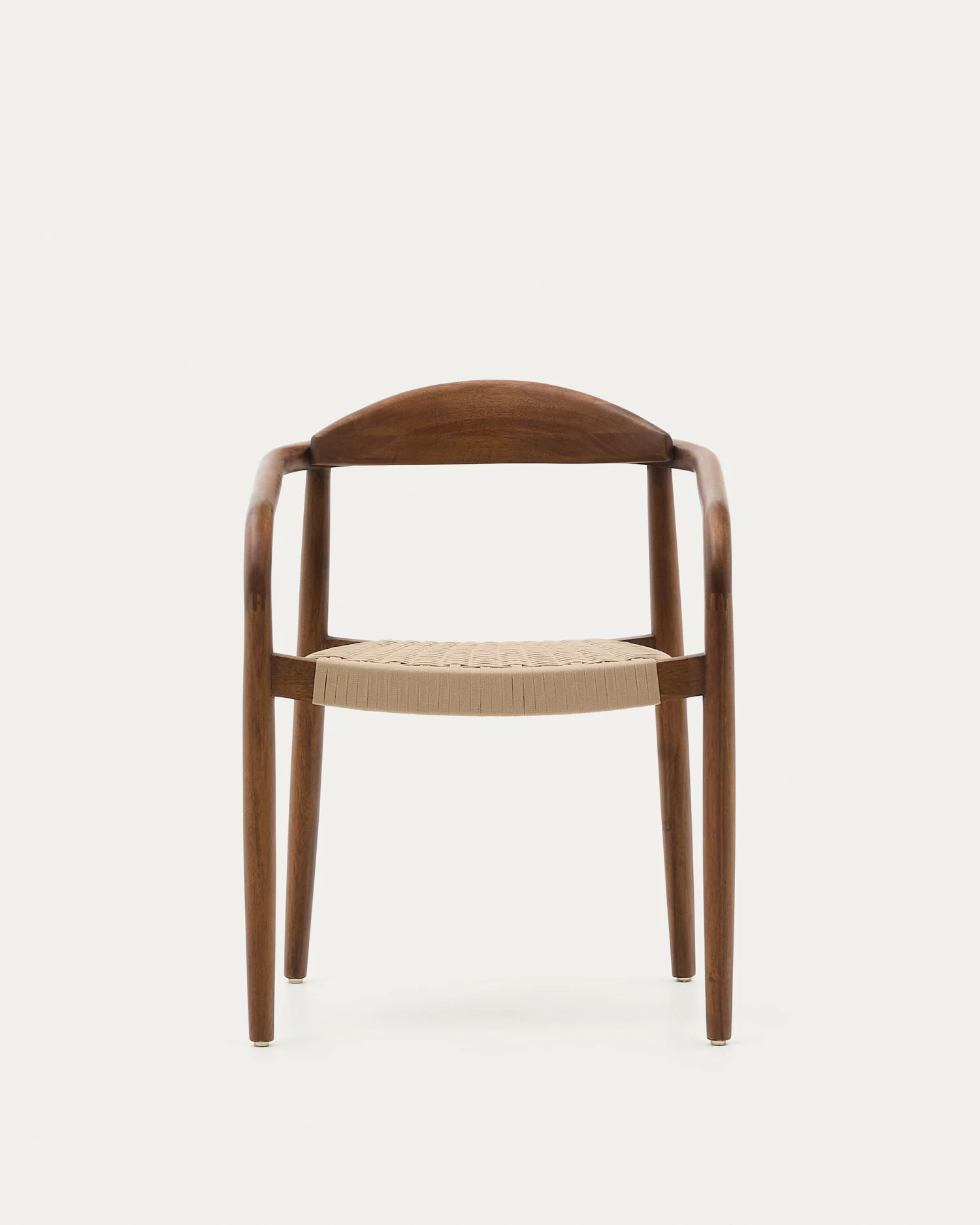 - Stackable chair with armrests, made using natural materials and artisanal processes.
