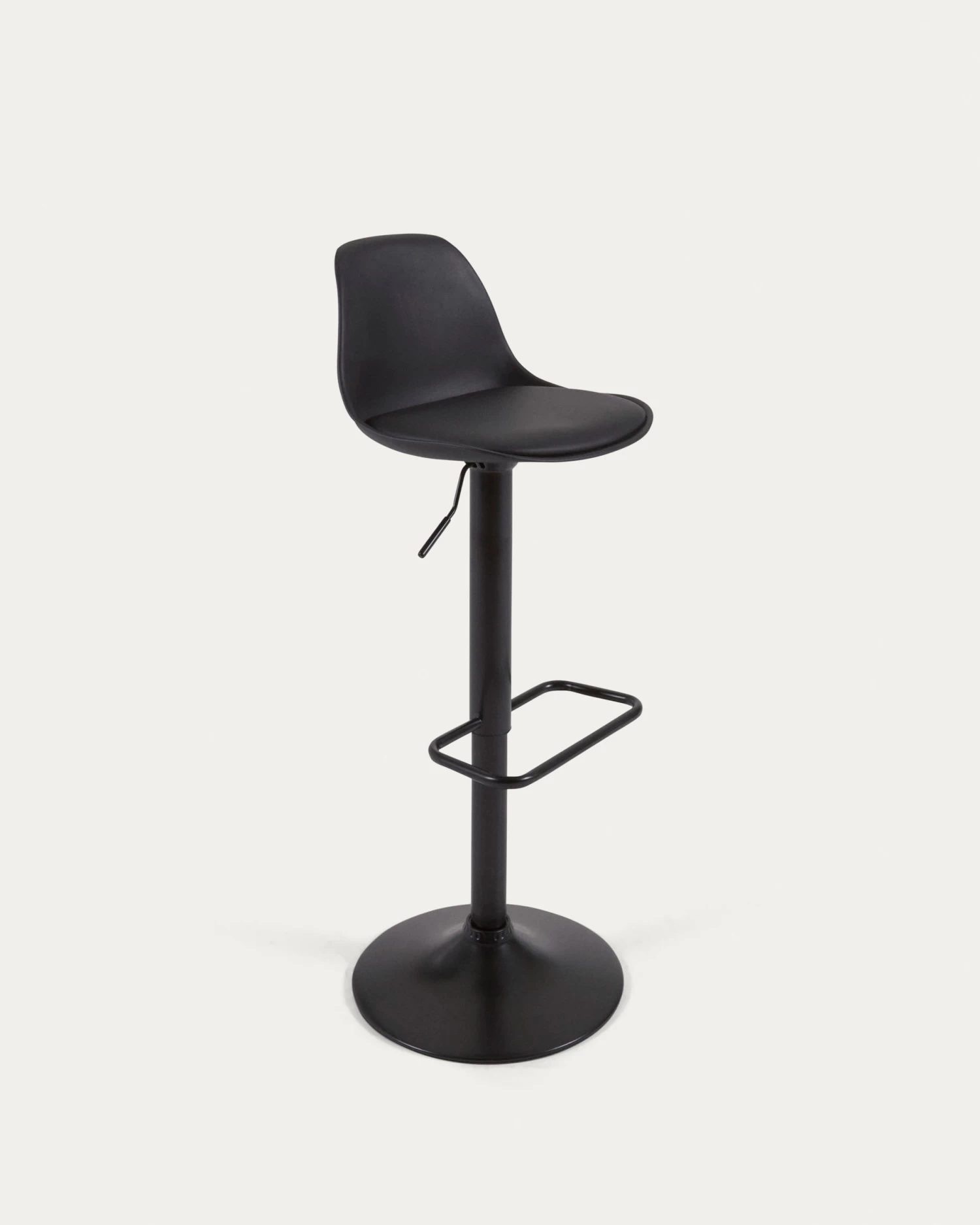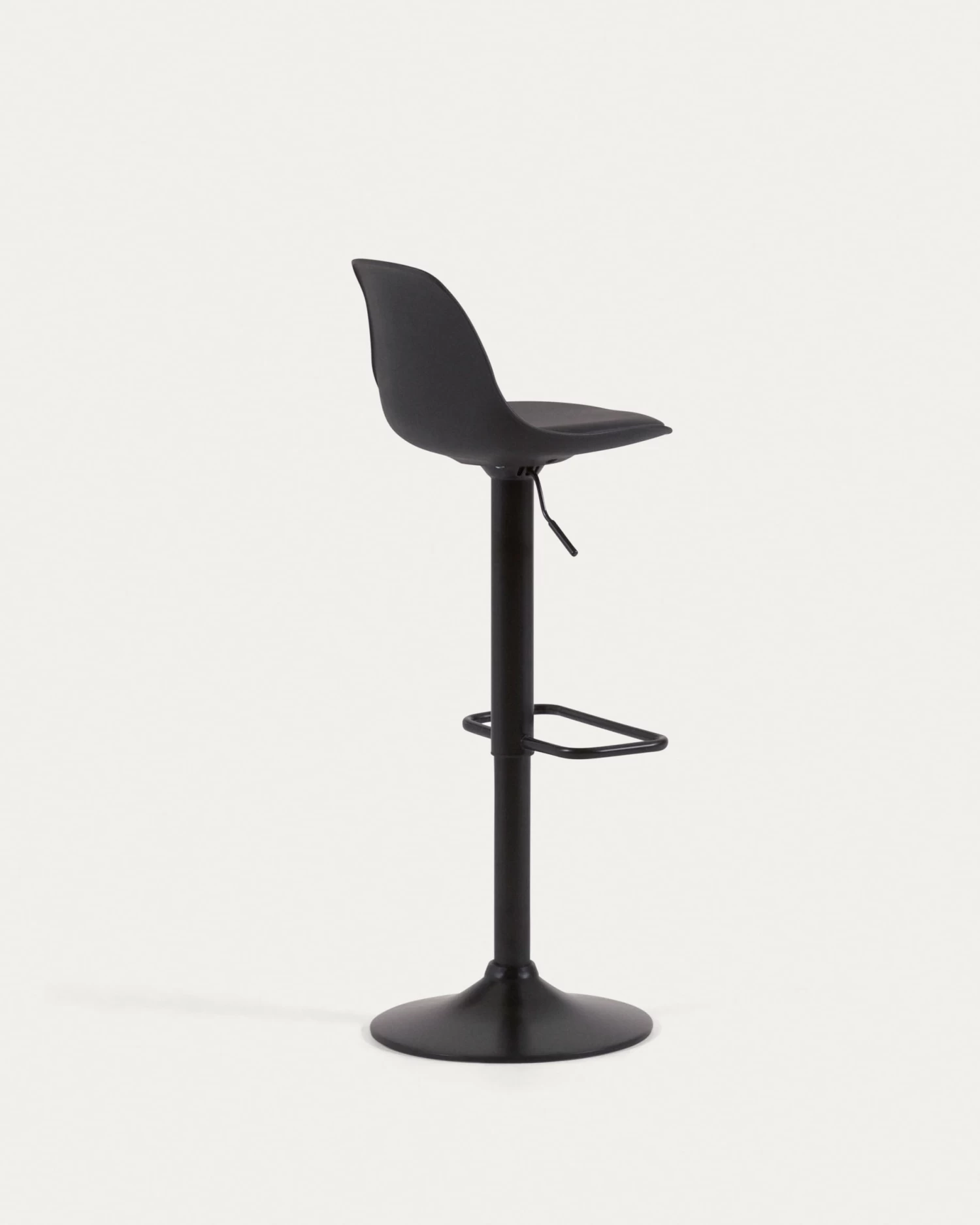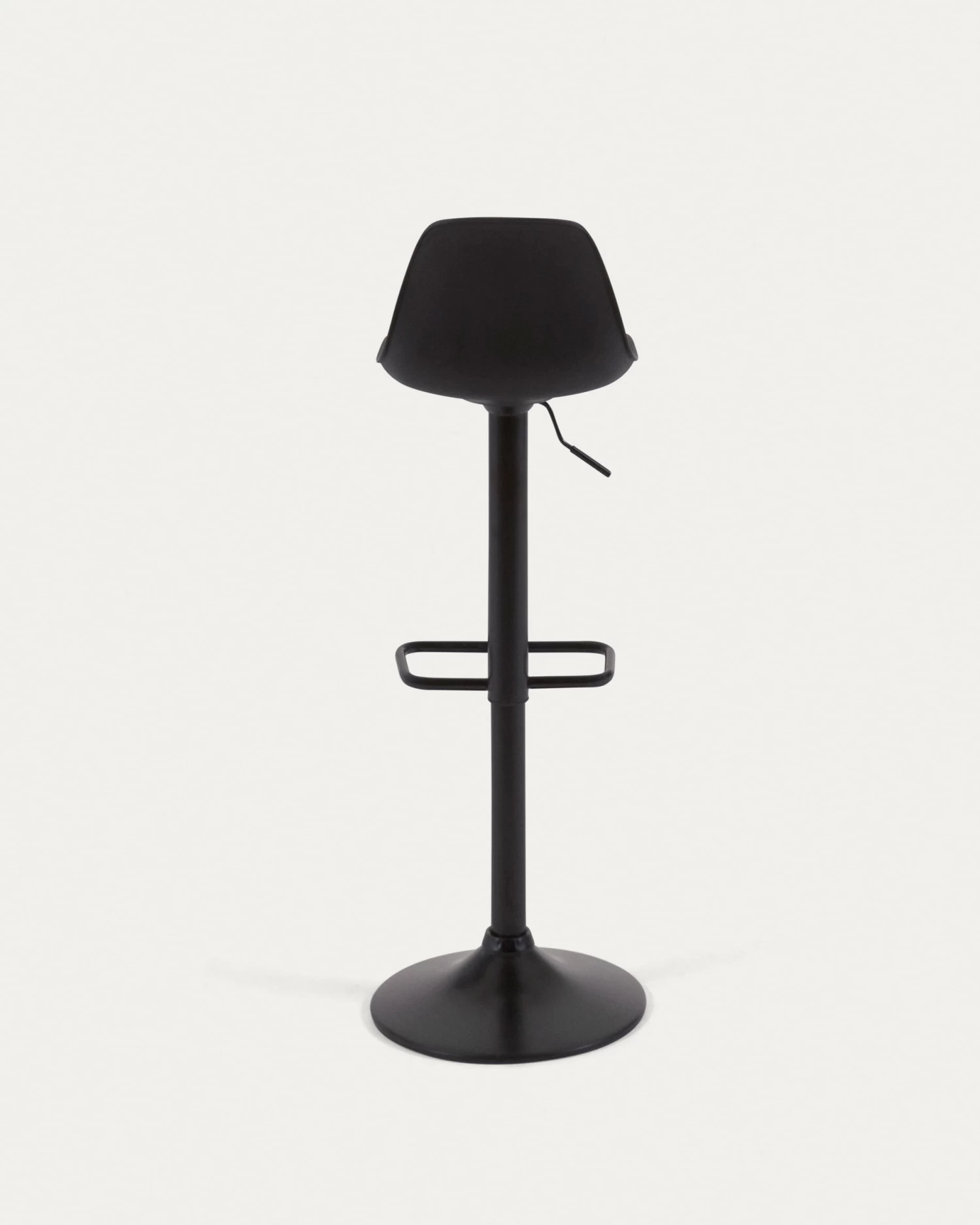 - Barstool with steel stand, polypropylene swivel seat and height-adjusting lever.