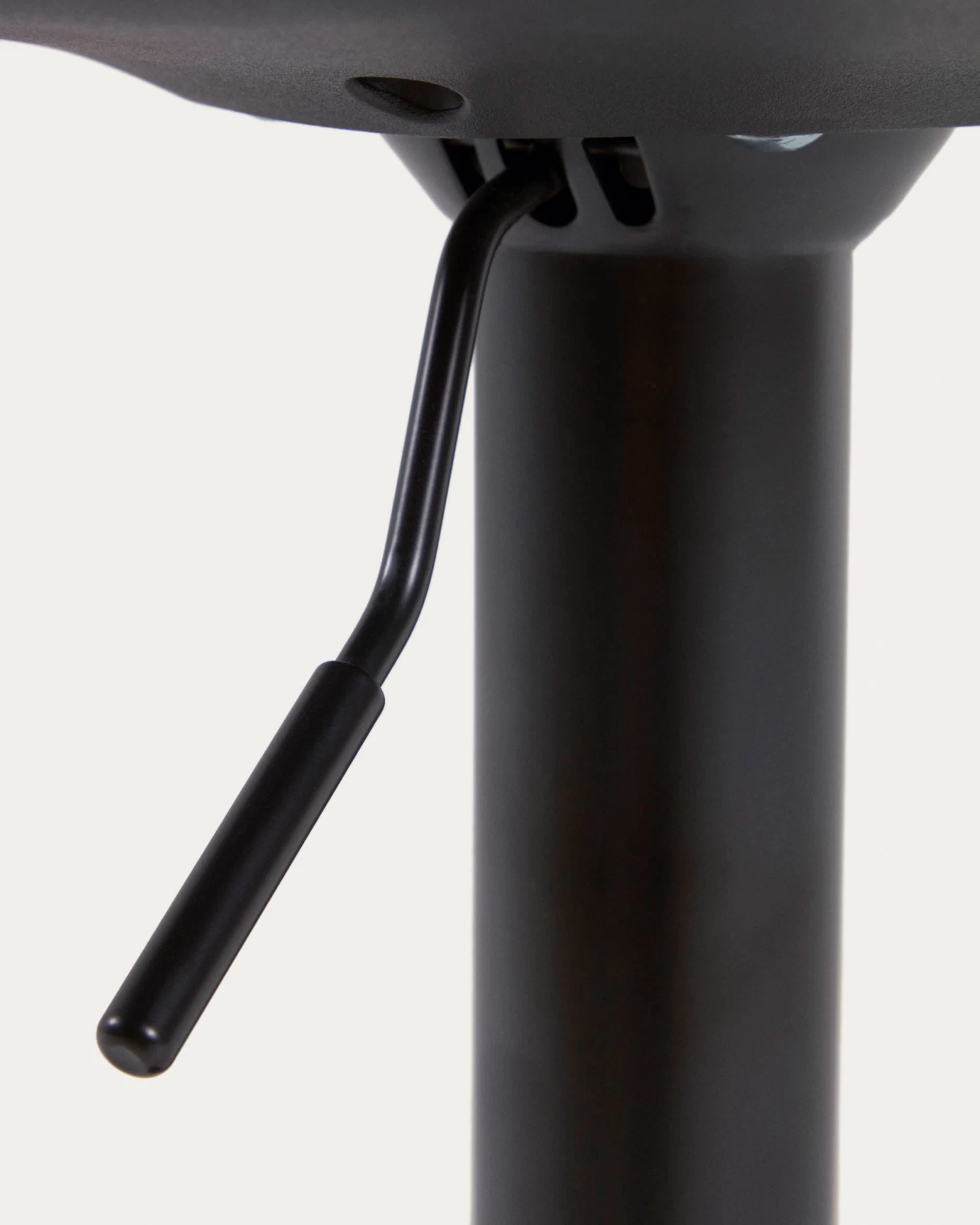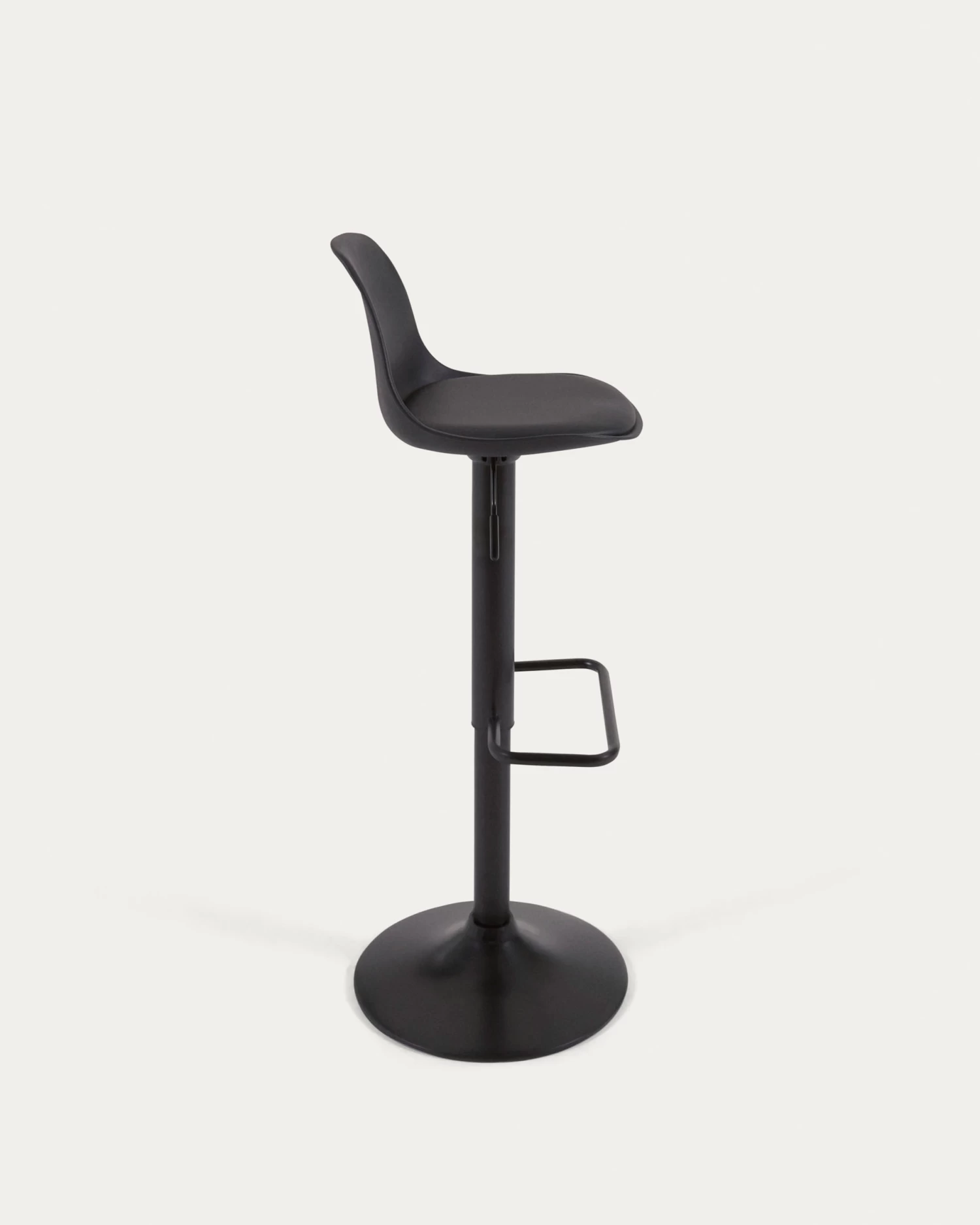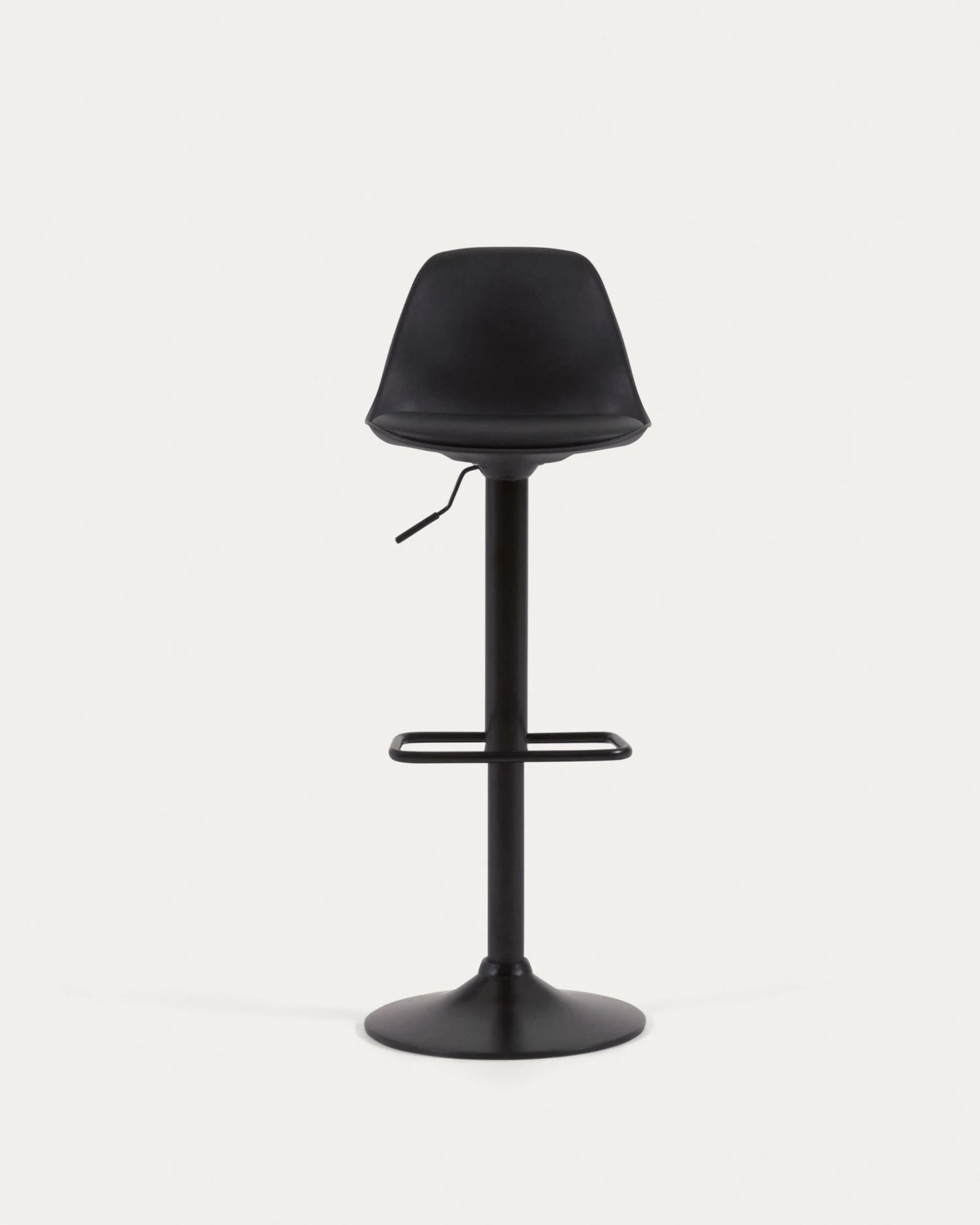 - Barstool with steel stand, polypropylene swivel seat and height-adjusting lever.