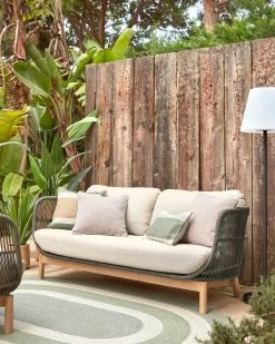 Catalina 3 Seater Sofa Made With Green Cord And 100% FSC Solid Acacia Wood 170 Cm | Kave Home