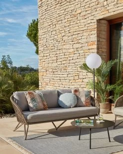 Comova 100% Outdoor 2-seater Sofa In Light Grey And Green Aluminium 150 Cm | Kave Home
