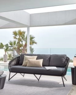 Comova 100% Outdoor 2-seater Sofa In Dark Grey And Black Aluminium 150 Cm | Kave Home