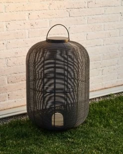 Saranella Large Portable Table Lamp In Black Polyrattan | Kave Home