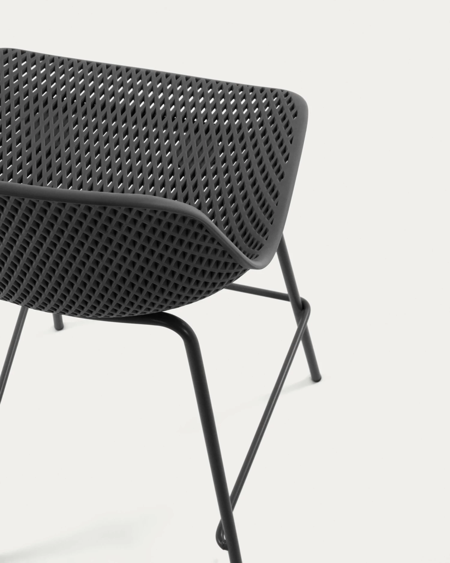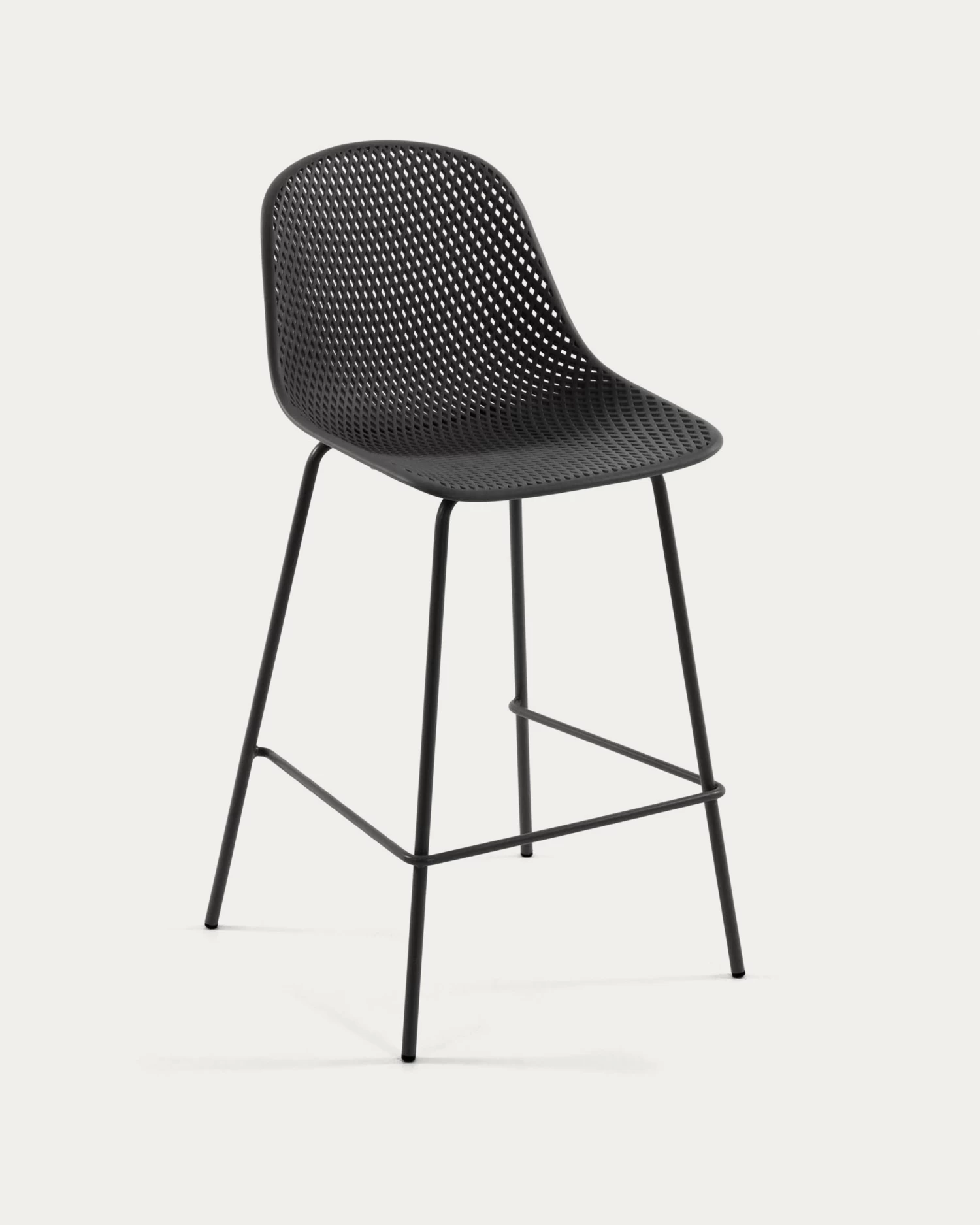The seat of the Quinby stool is made from recyclable plastic, supported by a metal structure. It’s a multi-use piece with infinite possibilities for your interior and outdoor spaces.