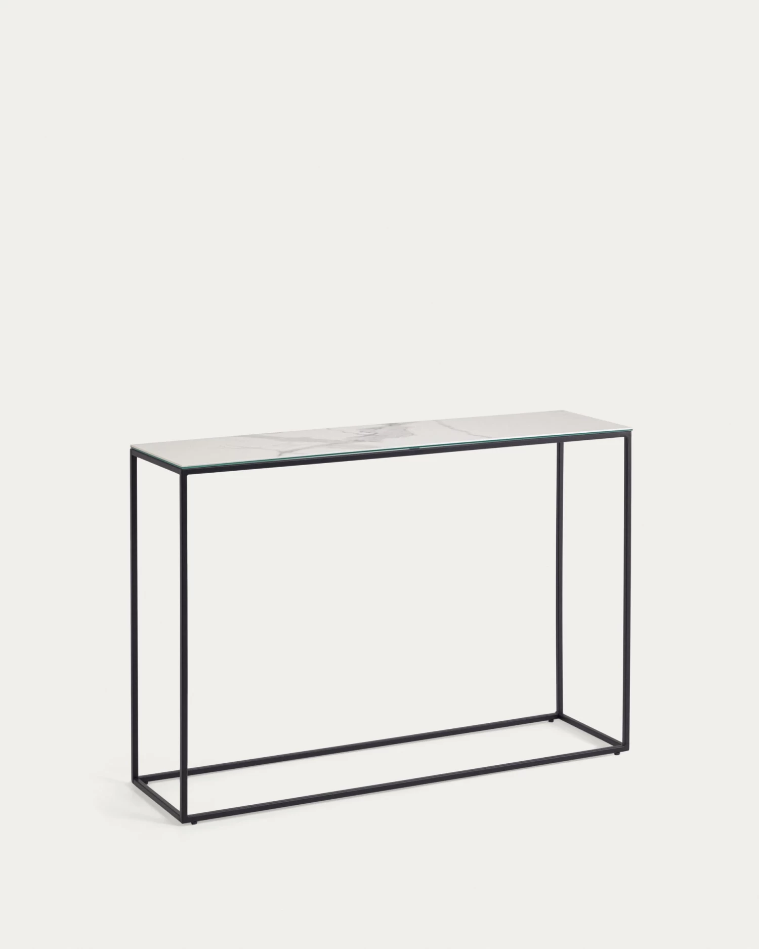 - Console table with porcelain top, resistant to liquids, high temperatures, and wear.
