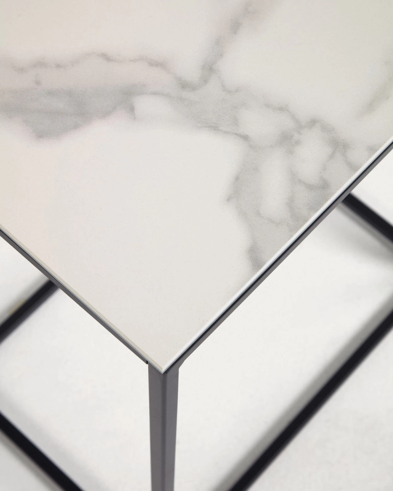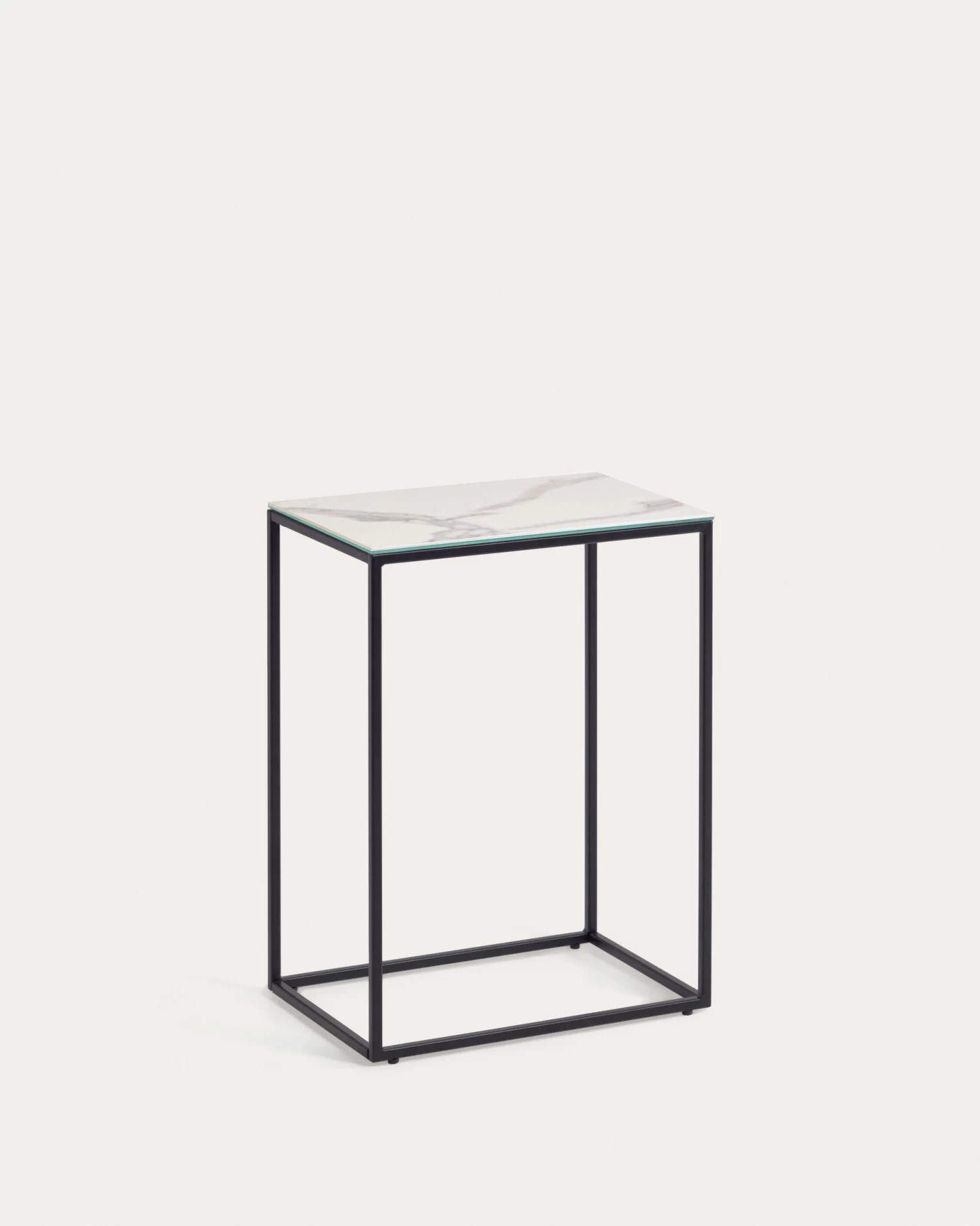 The Rewena side table has been designed by our team and created with a ceramic top on a steel base. This piece is inspired by minimalist trends and is mainly made out of recycled materials. Be eco-friendly.