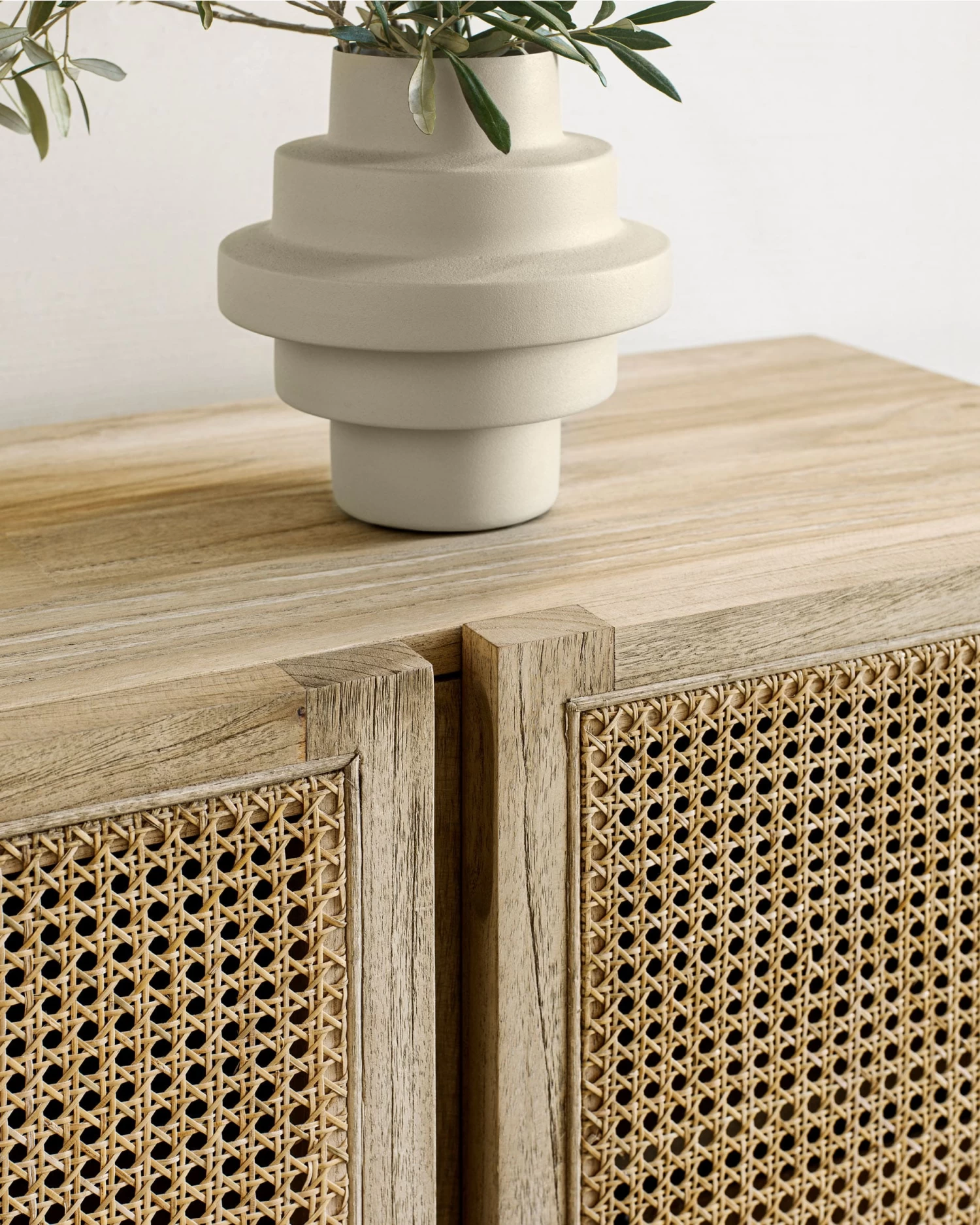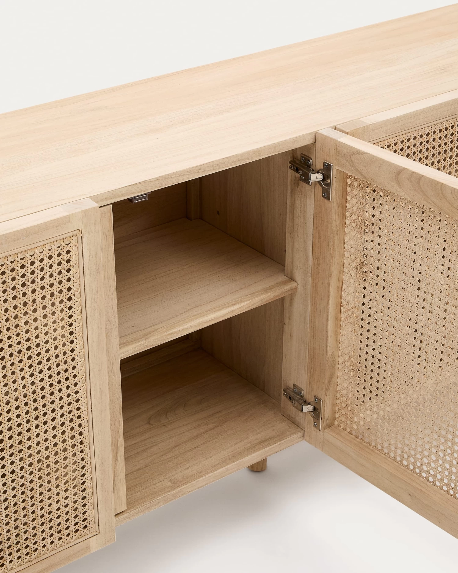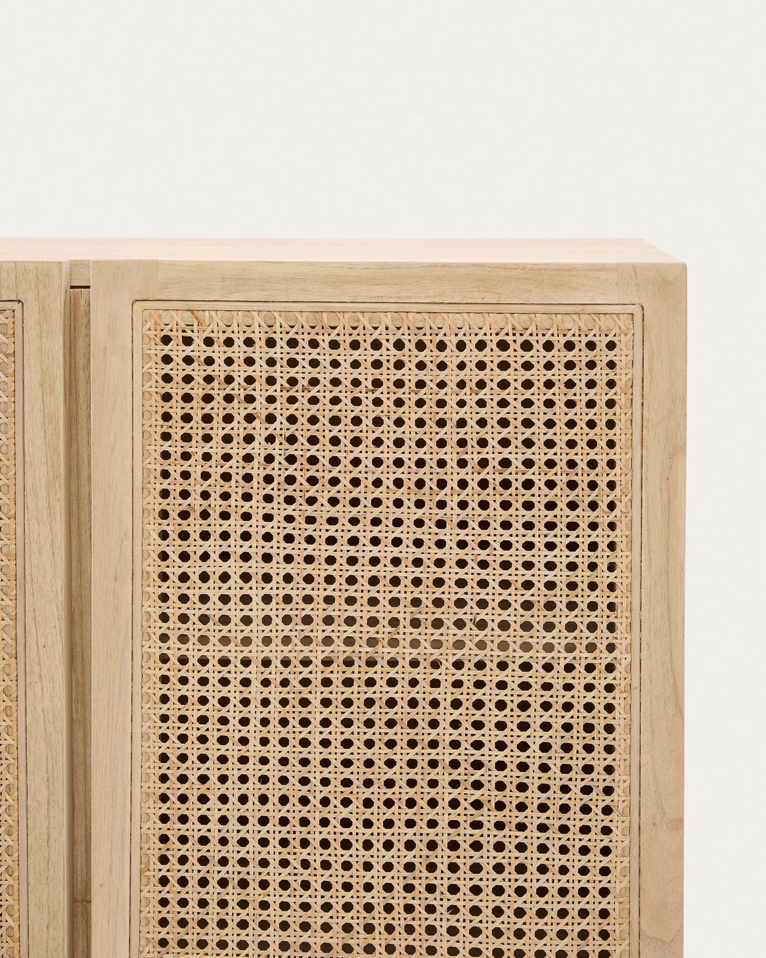 - Solid white cedar wood sideboard measuring 180 x 70 cm. Each piece has a braided rattan front and its own unique tones and grain from the wood.