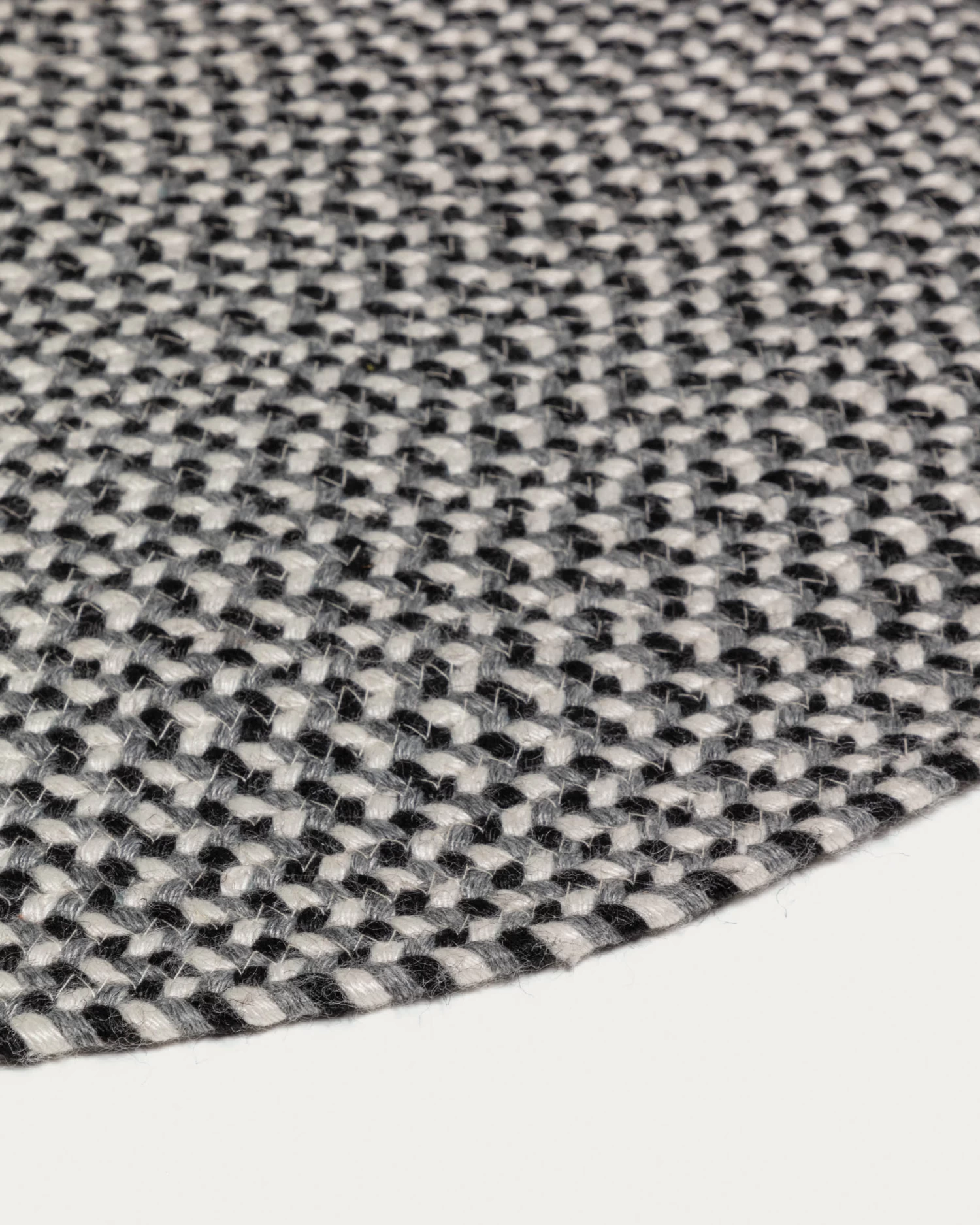 This soft Rodhe grey rug, of Ø 100 cm, is 100% PET, a recycled fabric taken from the selection and treatment of plastic bottles. As well as being an eco-friendly designer piece, it is also handmade as it is woven by hand, creating a play on shades. You can enjoy it all year round, indoors and outdoors, as it is resistant to the outdoor elements and lightweight so you can move it whenever you feel like it. Proof that design can also be sustainable. Think green