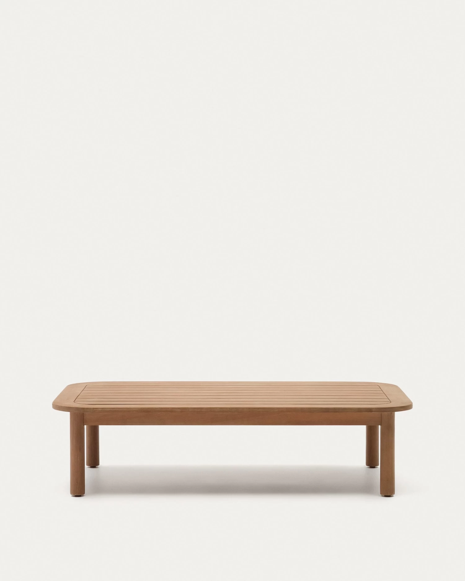 - Solid eucalyptus wood coffee table with a natural finish.